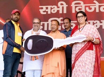 मुख्यमंत्री योगी आदित्यनाथ एवं केन्द्रीय महिला एवं बाल विकास मंत्री श्रीमती स्मृति जूबिन इरानी ने अमेठी सांसद खेल-कूद प्रतियोगिता-2023′ के विजेता खिलाड़ियों को दिया पुरस्कार।