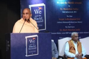 श्री मनमोहन वैद्य जी की पुस्तक “We and the World Around”का लोकार्पण प्रो. मुरली मनोहर जोशी और महामंडलेश्वर स्वामी अवधेशानंद गिरि जी महाराज के कर कमलों द्वारा संपन्न हुआ।