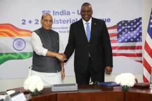 New delhi – Raksha Mantri Shri Rajnath Singh held a bilateral meeting with US Secretary of Defence Mr Lloyd Austin in New Delhi on November 10, 2023. The two Ministers comprehensively discussed a wide range of defence and strategic issues. There was particular focus on enhancing defence industrial cooperation and getting the defence industries from both sides together to cooperatively co-develop and co-produce defence systems. The Ministers explored ways and means to advance their defence technology cooperation with joint research in critical areas. They reviewed the progress of the India-US Defence Industrial Ecosystem, INDUS-X, which was launched in June this year and aims to expand the strategic technology partnership and defence industrial cooperation between the governments, businesses and academic institutions of India and US. Secretary Austin welcomed India’s decision to elevate to full membership of the Combined Maritime Forces, a multilateral construct headquartered in Bahrain.