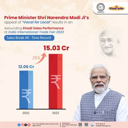 भारत अंतर्राष्ट्रीय व्यापार मेला-2023 में खादी और ग्रामोद्योगी उत्पादों की ऐतिहासिक 15.03 करोड़ रुपये की बिक्री।