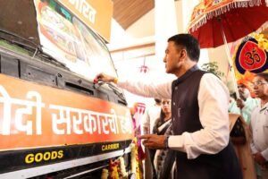 गोवा के मुख्यमंत्री डॉ. प्रमोद सावंत ने पोरवोरिम में विकसित भारत संकल्प यात्रा की आईईसी वैन को हरी झंडी दिखाईं।