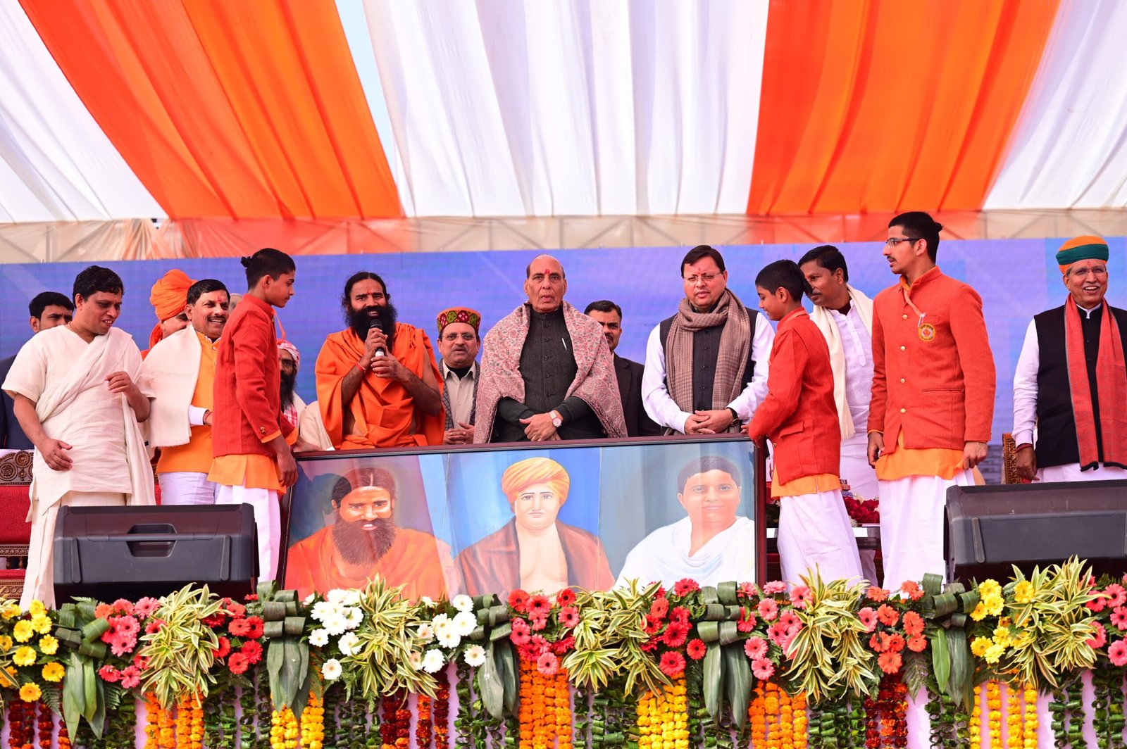 भारत की नैतिक और सांस्कृतिक विरासत को संरक्षित रखने के लिए देश में और अधिक गुरुकुल हों स्थापित।गुरुकुलों से अत्याधुनिक प्रौद्योगिकी के क्षेत्रों में अग्रसर होने का किया आह्वान।हमारे ज्ञान का विशाल भंडार पूरी दुनिया को है समर्पित- रक्षा मंत्री, श्री राजनाथ सिंह               केंद्रीय रक्षा मंत्री, श्री राजनाथ सिंह ने शनिवार को स्वामी दर्शनानन्द गुरूकुल महाविद्यालय, हरिद्वार में मुख्यमंत्री श्री पुष्कर सिंह धामी, मध्य प्रदेश के मुख्यमंत्री डॉ. मोहन यादव, केन्द्रीय कानून मंत्री श्री अर्जुन राम मेघवाल एवं योग गुरु स्वामी रामदेव की उपस्थित में ’पतंजलि गुरूकुलम’ एवं ’आचार्यकुलम’ का भूमि पूजन कर शिलान्यास किया।रक्षा मंत्री श्री राजनाथ सिंह ने अपने संबोधन में कहा कि देश में गुरूकुलों में न केवल आधुनिक शिक्षा प्रदान की जाए, बल्कि भारत की नैतिक और सांस्कृतिक विरासत को संरक्षित रखने के लिए और अधिक गुरुकुल स्थापित किए जाने चाहिए। ऐसे समय में जब विदेशी संस्कृति के अनुकरण के कारण नैतिक मूल्यों का ह्रास हो रहा है, युवाओं को नैतिक मूल्यों के समावेश के साथ आधुनिक शिक्षा प्रदान करने के लिए गुरुकुलों को यह दायित्व निभाने के लिए आगे आना चाहिए।उन्होंने गुरुकुलों से आज के निरंतर विकसित हो रहे समय के साथ तारतम्य बिठाते हुए पारंपरिक शिक्षा के साथ-साथ आर्टिफिशियल इंटेलिजेंस और क्वांटम प्रौद्योगिकी जैसी उभरती और अत्याधुनिक प्रौद्योगिकी के क्षेत्रों में अग्रसर होने का आह्वान किया। “ऐसी प्रौद्योगिकियां विकसित करें जो देश को इस क्षेत्र में अग्रणी बनायें। उन्होंने कहा कि गुरुकुलों को अन्य शिक्षण संस्थानों के लिए मार्गदर्शक के रूप में कार्य करना चाहिए, आने वाले समय में वे एक बार फिर देश और उसकी संस्कृति का प्रतिनिधित्व करें और भारत की नई पहचान बनें। रक्षा मंत्री ने कहा कि “लगभग 1,500 वर्ष पूर्व भारत में कई बड़े विश्वविद्यालय थे, जिनमें गुरुकुल परंपरा प्रचलित थी। उसके बाद, देश ने विदेशी आक्रमणकारियों द्वारा उस व्यवस्था को लगभग नष्ट होते हुए देखा। बदले में, उन्होंने एक ऐसी प्रणाली विकसित की जो हमारे युवाओं को देश की सांस्कृतिक भावना के अनुरूप शिक्षा प्रदान नहीं करती थी। रक्षा मंत्री ने कहा कि उस दौरान, स्वामी दर्शनानंद जी ने इस गुरुकुल की स्थापना की, जो तत्कालीन समय से हमारी युवा पीढ़ियों को ज्ञान और संस्कृति के माध्यम से  दीप्तिमान कर रहा है।”रक्षा मंत्री ने देश में सांस्कृतिक विकास में गुरुकुलों की भूमिका को रेखांकित करते हुए सांस्कृतिक उत्थान की दिशा में प्रधानमंत्री श्री नरेन्द्र मोदी के नेतृत्व वाली सरकार द्वारा किये जा रहे प्रयासों पर भी प्रकाश डाला। उन्होंने बताया क