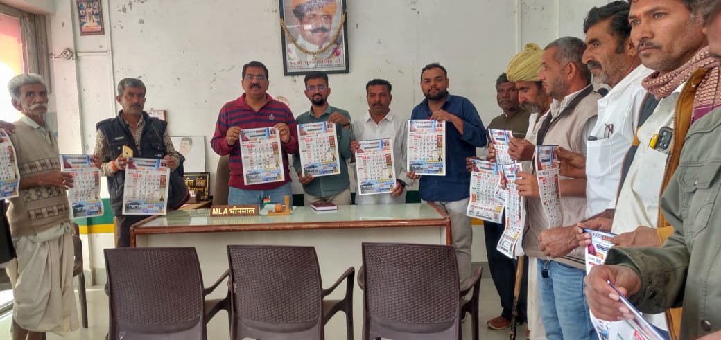 भीनमाल- मरुधर आईना द्वारा प्रकाशित नव वर्ष के कैलेंडर का विधायक समरजीतसिंह ने विमोचन किया । यह कार्यक्रम उनके कार्यालय पर आयोजित हुआ । ग्रामीणों और कार्यकर्ताओं की उपस्थिति में नव वर्ष-2024 के कैलेंडर का विमोचन किया गया। इस अवसर पर विधायक समरजीतसिंह ने कहा कि वर्ष 2024 ऐतिहासिक वर्ष साबित होने जा रहा है। 22 जनवरी को भगवान श्रीराम की भव्य प्राण-प्रतिष्ठा पर देश में घर-घर दीपावली मनाई जाएगी। साथ ही शहर के विकास की डोर को और मजबूत करके विधानसभा को विकास की राह में अग्रसर करने में सभी का योगदान अहम् साबित होगा । पत्रकार विक्रम राठी सहित उपस्थित ग्रामीणों ने नव वर्ष पर कैलेंडर वितरण की सराहना की। इस दौरान दिनेश बंजारा, भंवर माहेश्वरी, वरदाराम मेघवाल,
