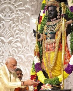 प्रधानमंत्री श्री नरेन्द्र मोदी ने आज उत्तर प्रदेश के अयोध्या में नवनिर्मित श्री राम जन्मभूमि मंदिर में श्री राम लला के प्राण प्रतिष्ठा (प्रतिष्ठा) समारोह में भाग लिया। श्री मोदी ने श्री राम जन्मभूमि मंदिर के निर्माण में योगदान देने वाले श्रमजीवियों से बातचीत की।एकत्र जनसमूह को संबोधित करते हुए प्रधानमंत्री ने कहा कि सदियों के बाद आखिरकार हमारे राम आ गए हैं। प्रधानमंत्री श्री मोदी ने इस अवसर पर नागरिकों को बधाई देते हुए कहा, “सदियों के धैर्य, अनगिनत बलिदान, त्याग और तपस्या के बाद, हमारे भगवान राम यहां हैं।” प्रधानमंत्री ने कहा कि ‘गर्भ गृह’ (आंतरिक गर्भगृह) के अंदर ईश्वरीय चेतना का अनुभव शब्दों में नहीं किया जा सकता है और उनका शरीर ऊर्जा से स्पंदित है और मन प्राण प्रतिष्ठा के क्षण के लिए समर्पित है। “हमारे राम लला अब तंबू में नहीं रहेंगे। यह दिव्य मंदिर अब उनका घर होगा”, प्रधानमंत्री ने विश्वास और श्रद्धा व्यक्त करते हुए कहा कि आज की घटनाओं को देश और दुनिया भर के राम भक्तों द्वारा अनुभव किया जा सकता है। श्री मोदी ने कहा, “यह क्षण अलौकिक और पवित्र है, वातावरण, पर्यावरण और ऊर्जा हम पर भगवान राम के आशीर्वाद का प्रतीक है।” उन्होंने रेखांकित किया कि 22 जनवरी की सुबह का सूरज अपने साथ एक नई आभा लेकर आया है। प्रधानमंत्री ने इस बात पर जोर देते हुए कहा कि 22 जनवरी, 2024 केवल कैलेंडर की एक तारीख नहीं है, यह एक नए ‘काल चक्र’ का उद्गम है।” राम मंदिर के भूमि पूजन के बाद से प्रतिदिन पूरे देश में उमंग और उत्साह बढ़ता ही जा रहा था। निर्माण कार्य देख, देशवासियों में हर दिन एक नया विश्वास पैदा हो रहा था और विकास कार्यों की प्रगति से नागरिकों में नई ऊर्जा का संचार हुआ। आज हमें सदियों के उस धैर्य की धरोहर मिली है, आज हमें श्रीराम का मंदिर मिला है। प्रधानमंत्री ने कहा, ”आज हमें सदियों के धैर्य की विरासत मिली है, आज हमें श्री राम का मंदिर मिला है।” उन्होंने जोर देकर कहा कि गुलामी की मानसिकता को तोड़कर उठ खड़ा हो रहा राष्ट्र, अतीत के हर दंश से हौसला लेकर, ऐसे ही नव इतिहास का सृजन करता है। प्रधानमंत्री श्री मोदी ने कहा कि आज की तारीख की चर्चा आज से एक हजार साल बाद की जाएगी और यह भगवान राम का आशीर्वाद है कि हम इस महत्वपूर्ण अवसर के साक्षी हैं। प्रधानमंत्री ने कहा, “दिन, दिशाएं, आकाश और हर चीज आज दिव्यता से भरी हुई है”, उन्होंने कहा कि यह कोई ये समय, सामान्य समय नहीं है। ये काल के चक्र पर सर्वकालिक स्याही से अंकित हो रहीं अमिट स्मृति रेखाएँ हैं।श्री राम के हर कार्य में पवनपुत्र हनुमान की उपस्थिति की चर्चा कहते हुए प्रधानमंत्री ने श्री हनुमान और हनुमान गढ़ी को नमन किया। उन्होंने लक्ष्मण, भरत, शत्रुघ्न और माता जानकी 