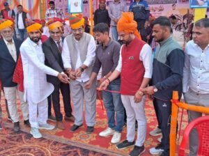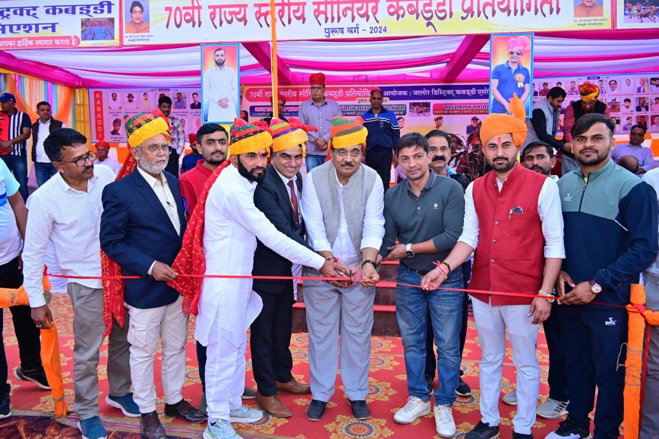 भीनमाल- स्थानीय शिवराज स्टेडियम में 25 से 28 फ़रवरी तक स्टेट कबड्डी चैंपियनशिप प्रतियोगिता का आयोजन किया गया जालोर जिला कबड्डी संघ के अध्यक्ष टी आर जाखड़ ने बताया कि 70 वीं राज्य स्तरीय सीनियर कबड्डी प्रतियोगिता पुरुष वर्ग का विधिवत उद्घाटन प्रथम चरण में मुख्य अतिथि विधायक डॉ समरजीतसिंह, अध्यक्षता राजस्थान राज्य कबड्डी संघ के अध्यक्ष तेजस्वीसिंह गहलोत विशेष अतिथि एवं मुख्य भामाशाह छोगाराम देवासी के आतिथ्य में किया गया । राज्य स्तरीय सीनियर कबड्डी पुरुष वर्ग की प्रतियोगिता में राजस्थान प्रदेश के 30 जिलों सहित राजस्थान पुलिस टीम ने भाग लिया । मुख्य अतिथि डॉ समरजीतसिंह विधायक ने अपने उद्बोधन में कहा कि कबड्डी का खेल भारत में हर गांव वह कस्बा में प्राचीन काल से लोकप्रिय एवं हमारा पारम्परिक खेल है, जो हमारे हर गांव में खेला जाता है । इस खेल के आयोजन में शामिल होने से अपनापन का अहसास हुआ । सांयकालीन कबड्डी प्रतियोगिता के द्वितीय चरण के मुख्य अतिथि मुख्य सचेतक जोगेश्वर गर्ग मुख्य संचेतक ने खिलाड़ियों का हौसला अफजाई किया । इस अवसर पर गर्ग ने कहा कि कबड्डी खेल में अंतरराष्ट्रीय स्तर पर भारत की खास पहचान बनाई हुई है । कबड्डी हमारे पारंपरिक खेलों का अहम हिस्सा है । रात्रि को एक शाम कबड्डी के नाम भव्य सांस्कृतिक कार्यक्रम में चचे ख़ान म्यूजिकल पार्टी पर कालबेलिया नृत्य व सुप्रसिद्ध गैर नृत्य आहोर, मारवाड़ी घूमर ने खिलाड़ियों का मन मोह लिया ।
