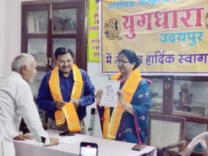 उदयपुर-युगधारा साहित्यिक सांस्कृतिक एवं वैचारिक संस्था का कल काव्य गोष्ठी के साथ ही आम सभा का चुनाव संपन्न हुआ जिसमें सर्वसम्मति से निर्विरोध उदयपुर की प्रसिद्ध साहित्यकार किरण बाला जीनगर ‘किरन’ को अध्यक्ष पद हेतु चुना गया।