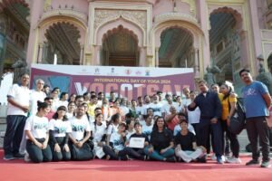 जयपुर-आयुष मंत्रालय भारत सरकार के निर्देशों के अंतर्गत आगामी अंतर्राष्ट्रीय योग दिवस 2024 के उल्टी गिनती कार्यक्रमो की श्रृंखला में 67 दिन शेष रहने पर छोटी काशी जयपुर के पत्रिका गेट,
