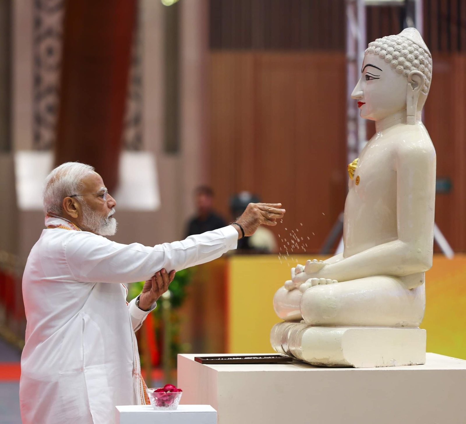 “ यह भारत ही है जो ‘स्वयं’ के लिए नहीं, ‘सर्वम्’ के लिए सोचता है। जो ‘स्व’ की नहीं, ‘सर्वस्व’ की भावना करता है, जो अहम् नहीं वयम् की सोचता है, जो ‘इति’ नहीं, ‘अपरिमित’ में विश्वास करता है, जो नीति ही नहीं, नेति की भी बात करता है। ये भारत ही है जो पिंड में ब्रह्मांड की बात करता है, विश्व में ब्रह्म की बात करता है, जीव में शिव की बात करता है।”प्रधानमंत्री ने कहा कि ठहराव के कारण विचार मतभेदों में बदल सकते हैं, हालांकि, चर्चा की प्रकृति के आधार पर चर्चा नई संभावनाओं के साथ-साथ विनाश का कारण भी बन सकती है। उन्होंने इस बात पर जोर दिया कि पिछले 75 वर्षों के मंथन से इस अमृत काल में अमृत निकलना चाहिए। प्रधानमंत्री ने कहा, “दुनिया में अनेक युद्धों के समय हमारे तीर्थंकरों की शिक्षाएं और भी महत्वपूर्ण हो गई हैं।” पीएम मोदी ने अनेकांतवाद और स्याद्वाद जैसे दर्शनों को याद किया जो हमें एक विषय के अनेक पहलुओं को समझने और दूसरों के दृष्टिकोण को भी देखने और स्वीकारने की उदारता को अपनाना सिखाते हैं।प्रधानमंत्री ने कहा,‘‘आज संघर्षों में फंसी दुनिया भारत से शांति की अपेक्षा कर रही है। उन्होंने कहा कि नए भारत के इस नई भूमिका का श्रेय हमारे बढ़ते सामर्थ्य और विदेश नीति को दिया जा रहा है। लेकिन इसमें हमारी सांस्कृतिक छवि का बहुत बड़ा योगदान है। आज भारत इस भूमिका में आया है, क्योंकि आज हम सत्य और अहिंसा जैसे व्रतों को वैश्विक मंचों पर पूरे आत्मविश्वास से रखते हैं। हम दुनिया को बताते हैं कि वैश्विक संकटों और संघर्षों का समाधान भारत की प्राचीन संस्कृति और प्राचीन परंपरा में है। इसीलिए, आज विरोधों में भी बंटे विश्व के लिए, भारत ‘विश्व-बंधु’ के रूप में अपनी जगह बना रहा है। उन्होंने जलवायु परिवर्तन से निपटने के लिए मिशन लाइफऔर एक विश्व-एक सूर्य-एक ग्रिड के रोडमैप के साथ एक पृथ्वी, एक परिवार और एक भविष्य के दृष्टिकोण जैसी भारतीय पहलों का उल्लेख किया। उन्होंने कहा कि आज भारत अंतर्राष्ट्रीय सौर गठबंधन जैसी भविष्योन्मुखी वैश्विक पहल का नेतृत्व कर रहा है। प्रधानमंत्री ने कहा, “इन पहलों ने न केवल दुनिया में आशा पैदा की है बल्कि हमारी संस्कृति और परंपरा के प्रति वैश्विक धारणा में बदलाव आया है।