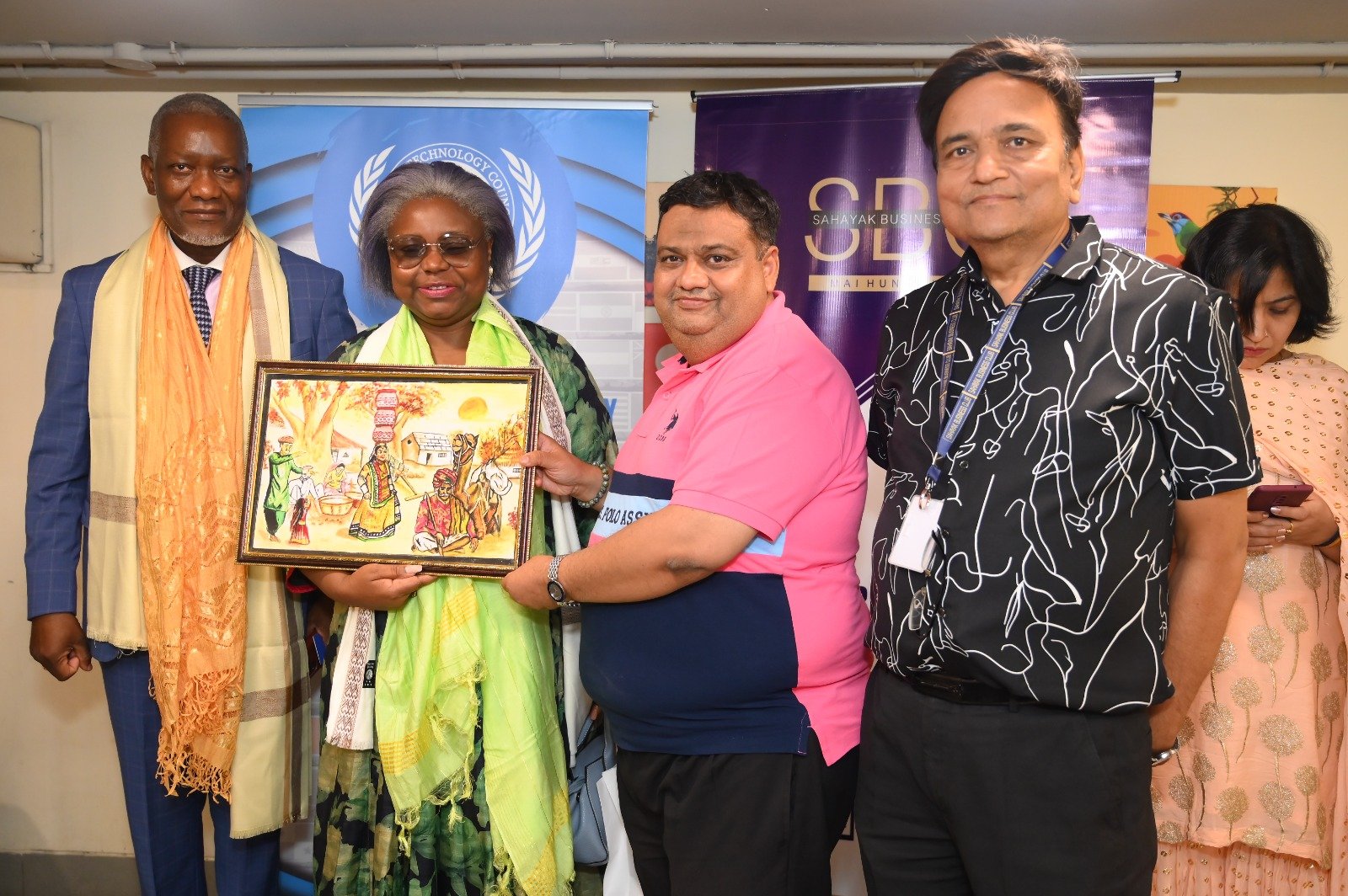 Sahayak Business Club founders Neha Thukral and Jatin, presented a memento to the Ambassador.