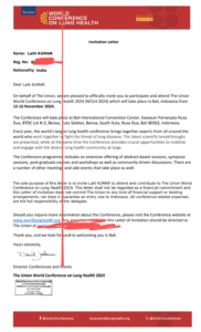 12-16 नवंबर 2024 तक इंडोनेशिया के बाली में होने वाले “बाली इंटरनेशनल कन्वेंशन”में फेफड़े के स्वास्थ्य पर “यूनियन वर्ल्ड कॉन्फ्रेंस 2024” के आयोजन में बतौर मिडिया पर्सन के तौर पर आमंत्रित किया गया है।इस कन्वेंशन में दुनिया भर से शोधकर्ता, वैज्ञानिक, स्वास्थ्य पेशेवर, डॉक्टर, नागरिक समाज, प्रभावित समुदाय, सरकारी अधिकारी, सहित फेफड़े के स्वास्थ्य विशेषज्ञ UnionConf2024 में भाग लेंगे, इस सम्मेलन में ज्ञान को साझा करने और यह कार्यक्रम एक-दूसरे को सीखने-सिखाने के लिए तत्पर रहते का आह्वान करता हैं, जहां हर कोई एक साथ होता है, क्योंकि हम सभी के लिए एक स्वस्थ दुनिया के लिए प्रयास करते हैं, जो तपेदिक और फेफड़ों की बीमारियों से मुक्त हो।को 12-16 नवंबर 2024 तक इंडोनेशिया के बाली में होने वाले “बाली इंटरनेशनल कन्वेंशन”में फेफड़े के स्वास्थ्य पर “यूनियन वर्ल्ड कॉन्फ्रेंस 2024” के आयोजन में बतौर मिडिया पर्सन के तौर पर पत्र भेजकर आमंत्रित किया गया है।इस कन्वेंशन में दुनिया भर से शोधकर्ता, वैज्ञानिक, स्वास्थ्य पेशेवर, डॉक्टर, नागरिक समाज, प्रभावित समुदाय, सरकारी अधिकारी, नर्स और छात्र सहित हजारों फेफड़े के स्वास्थ्य विशेषज्ञ UnionConf2024 में भाग लेंगे,