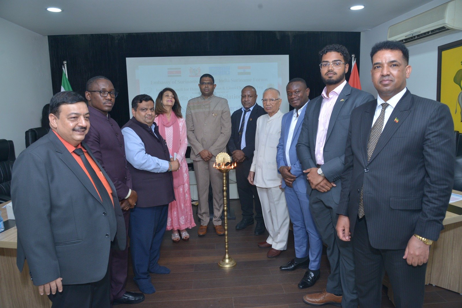 New Delhi, August 21,2024 — The Global Trade & Technology Council of India (GTTCI), in collaboration with the Embassy of Suriname in association with Indian Council for Human Relations (ICHR) and Lions Club Delhi Veg, successfully hosted a seminar on “India-Suriname Relations” under the theme “India’s Global Partnerships – A Key to a Developed Nation by 2047.” This event was held at the Embassy of Suriname in New Delhi as part of the celebrations marking the 78th Independence Day of India.The seminar was attended by distinguished diplomats and representatives from various foreign missions, including Ghana, Ethiopia, Guyana, Mongolia, Papua New Guinea, Tajikistan, Germany, and other VIPs. The event commenced with the national anthems of India and Suriname, followed by a traditional Ganesh Vandana, setting the stage for a series of insightful discussions.Dr. Gaurav Gupta, Founder President of GTTCI and Treasurer of the Indian Council for Human Relations (ICHR), welcomed the esteemed guests and introduced the key speakers.