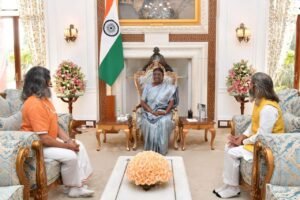 महामहिम राष्ट्रपति महोदया से योगाचार्य ढाकाराम एवं योगी मनीष भाई विजयवर्गीय ने की शिष्टाचार भेंट।