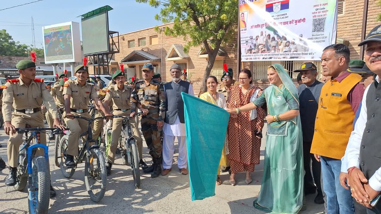 जिला कलक्टर टीना डाबी एवं ब्रांड एम्बेसेडर रुमादेवी ने साइकिल रैली को हरी झंडी दिखाई,बाड़मेर में सशस्त्र सेना झंडा दिवस की शुरूआत।