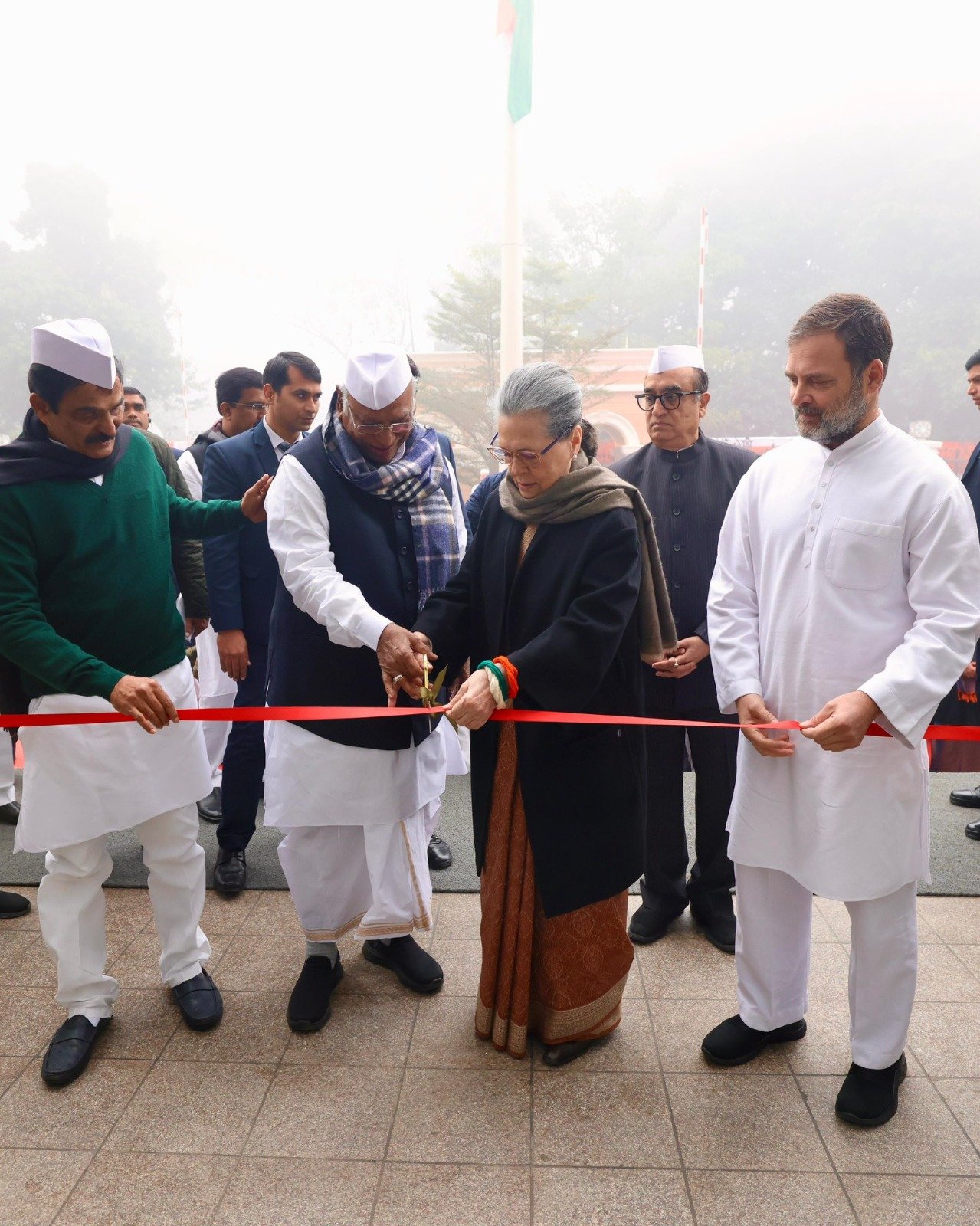 नई दिल्ली -अखिल भारतीय कांग्रेस कमेटी के राष्ट्रीय अध्यक्ष श्री मल्लिकार्जुन खड़गे जी और कांग्रेस संसदीय दल की अध्यक्ष श्रीमती सोनिया गांधी जी ने नेता प्रतिपक्ष श्री राहुल गांधी जी की उपस्थिति में इंदिरा भवन का उद्घाटन नई दिल्ली में किया गया।यह भवन कांग्रेस पार्टी का नया मुख्यालय, “इंदिरा भवन,” सिर्फ एक इमारत नहीं है, यह लोकतंत्र, राष्ट्रीयता, धर्मनिरपेक्षता, समावेशी विकास और सामाजिक न्याय की नींव पर खड़ा एक सपना है।कांग्रेस के 140 साल पुराने गौरवशाली इतिहास को खुद में संजोए, यहां की दीवारें सत्य, अहिंसा, त्याग, संघर्ष और देश प्रेम की महागाथा बयां कर रही हैं।इंदिरा भवन,लोकतंत्र, राष्ट्रवाद, धर्म निरपेक्षता, समावेशी विकास और सामाजिक न्याय की नींव पर बना कांग्रेस का नया मुख्यालय।यह पार्टी एक नई ऊर्जा, एक नए संकल्प और एक नए विश्वास के साथ भारत के उज्जवल भविष्य को गढ़ने, लोगों की भागीदारी सुनिश्चित करने और न्याय का परचम लहराने के लिए तैयार है।