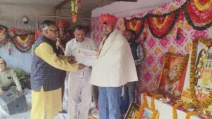जयपुर(नरेन्द्र पांडे):- राम मन्दिर स्थापना दिवस की पहली वर्षगांठ पर अंतर्राष्ट्रीय समरसता मंच के तत्वावधान में मंच के जयपुर स्थित गुजर की थडी क्षेत्र में मोतीनगर कार्यालय पर राम मंदिर स्थापना दिवस समारोह मंच के संयोजक विश्व रत्न महावीर प्रसाद टोरडी विशिष्ठ सलाहकार महामहिम प्रथम उप राष्ट्रपति नेपाल सरकार के नेतृत्व में बडी धूमधाम से मनाया गया समारोह का शुभारंभ महावीर प्रसाद टोरडी ने अपनी अर्धांगिनी श्रीमती सन्तोष शर्मा व परिवारजनों के साथ भगवान श्रीराम की पूजा-अर्चना से प्रारंभ किया गया प्रातः 10:00 बजे कलश पूजन कर शोभा यात्रा निकाली गयी दोपहर पश्चात 1:00 बजे सुन्दर काण्ड का पाठ किया गया मंच के मुख्य सलाहकार कुलदीप प्रसाद शर्मा एडवोकेट ईस्ट-वेस्ट लाॅ फर्म काठमाण्डू नेपाल ने बताया कि इस अवसर पर मंच की प्रतिभाओ को मर्यादा सनातन अलंकरण से सम्मानित किया गया मर्यादा सनातन अलंकरण प्राप्त करने वाली प्रतिभाओ में डाॅ.तपन काकती इंटीग्रेटेड ग्लोबल यूनिवर्सिटी उत्तराखण्ड, महावीर शर्मा अध्यापक राजकीय बालिका उच्च प्राथमिक विद्यालय जयसिंहपुर विराटनगर जिला कोटपुतली बहरोड, डाॅ विनोद कुमार शर्मा निदेशक ओम पवन पब्लिक सीनियर सैकण्डरी स्कूल लालसोट जिला दौसा,राम नारायण चौधरी प्रगतिशील किसान ग्राम बसेडी जिला जयपुर, डाॅ महेंद्र सिंह वशिष्ठ प्रधानाचार्य संत बृजमोहन सीनियर सेकेण्डरी स्कूल फरीदाबाद हरियाणा वेद प्रदीप मिश्रा निदेशक सरस्वती आयुर्वेदिक मुम्बई, भामाशाह शरद गौंड एडिटर चीफ रिप्ले न्यूज जयपुर,भगवान सिंह यदुवंशी पंचायत समिति सदस्य डीग,महन्त भारत भूषण जोशी पीठाधीश्वर श्री रूद्राणी महाकाली शक्तिपीठ धाम खेरबाडा शान्तिनाथ जोशी पूर्व प्रधानाचार्य राजकीय उच्च माध्यमिक विद्यालय कोलायत,