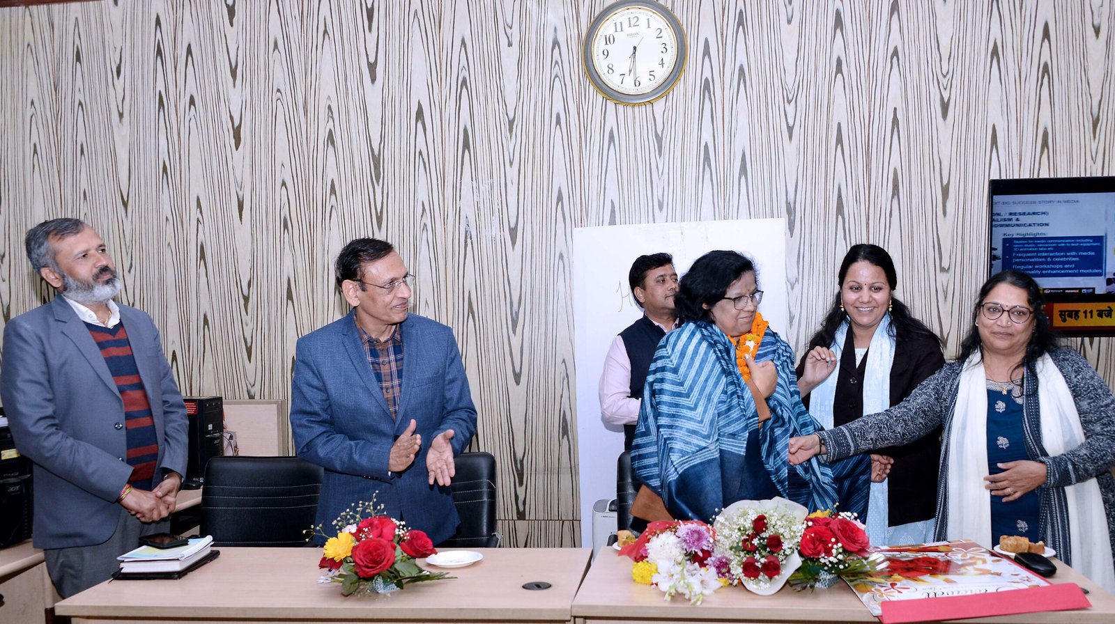 प्रारंभ में विभाग के आयुक्त श्री सुनील शर्मा ने श्रीमती सक्सेना को बुके एवं मोमन्टो देकर सम्मानित किया।