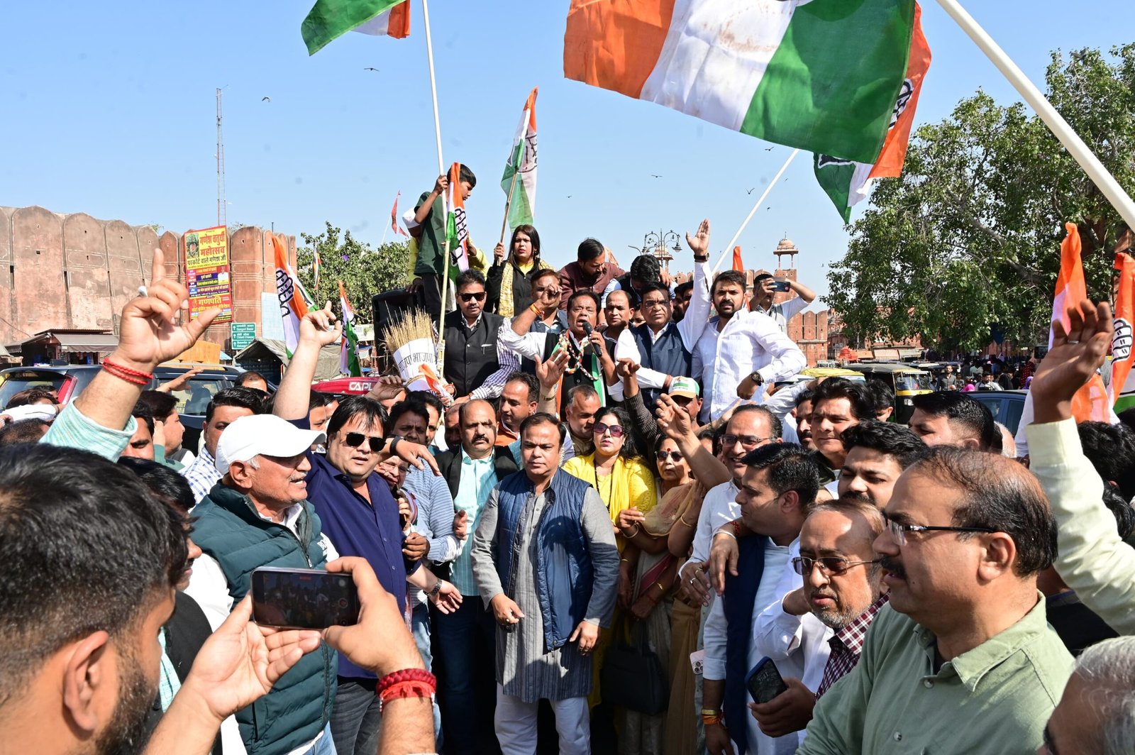 जयपुर, 22 फरवरी। गत् दिवस राजस्थान विधानसभा में भाजपा सरकार के मंत्री श्री अविनाश गहलोत द्वारा देश की पूर्व प्रधानमंत्री भारत रत्न स्व. श्रीमती इंदिरा गॉंधी का नाम लेकर अमर्यादित टिप्पणी करने के विरोध में तथा मंत्री के आचरण का विरोध कर रहे राजस्थान प्रदेश कांग्रेस कमेटी के अध्यक्ष श्री गोविन्द सिंह डोटासरा सहित छ: विधायकों का विधानसभा से निलम्बन करने के विरोध में प्रदेश के सभी जिला मुख्यालयों पर जिला कांग्रेस कमेटियों द्वारा भाजपा सरकार के विरूद्ध विरोध-प्रदर्शन किये गये।राजस्थान प्रदेश कांग्रेस कमेटी के महासचिव एवं मीडिया प्रभारी स्वर्णिम चतुर्वेदी ने बताया कि गत् दिवस विधानसभा में भाजपा सरकार के मंत्री द्वारा देश की पूर्व प्रधानमंत्री भारत रत्न स्व. श्रीमती इंदिरा गॉंधी के संदर्भ में अमयार्दित टिप्पणी की जिसका विरोध करने पर मंत्री के विरूद्ध कार्यवाही करने की बजाए मंत्री से माफी नामे की मांग कर रहे राजस्थान प्रदेश कांग्रेस कमेटी के