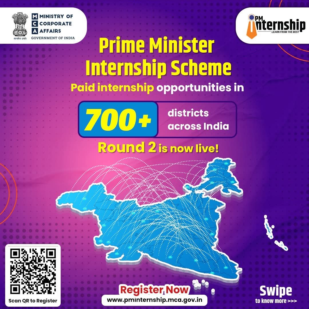 पहले राउंड में 6 लाख से अधिक आवेदन प्राप्त होने के बाद, दूसरे राउंड में भारत के 730 से अधिक जिलों में स्थित शीर्ष कंपनियों में 1 लाख से अधिक इंटर्नशिप के अवसर प्रदान किए जा रहे हैं।तेल, गैस और ऊर्जा; बैंकिंग और वित्तीय सेवाएं, यात्रा और आतिथ्य, ऑटोमोटिव, धातु और खनन विनिर्माण और औद्योगिक, तेजी से बिकने वाले उपभोक्ता सामान (एफएमसीजी) और कई अन्य क्षेत्रों की 300 से अधिक शीर्ष कंपनियों ने भारतीय युवाओं को व्यावहारिक अनुभव प्राप्त करने, पेशेवरों के साथ नेटवर्क बनाने और अपनी रोजगार क्षमता बढ़ाने के लिए इंटर्नशिप के अवसर प्रदान किए हैं।पात्र युवा अपने पसंदीदा जिले, राज्य, क्षेत्र, इलाके के आधार पर इंटर्नशिप की तलाश कर सकते हैं और उन्हें चुन सकते हैं तथा अपने निर्दिष्ट वर्तमान पते से अनुकूलन योग्य दायरे में इंटर्नशिप फ़िल्टर कर सकते हैं। दूसरे राउंड में, प्रत्येक आवेदक आवेदन की अंतिम तिथि तक अधिकतम तीन इंटर्नशिप के लिए आवेदन कर सकता है।दूसरे राउंड के लिए, देश भर में 70 से अधिक आईईसी कार्यक्रम आयोजित किए जा रहे हैं, जिनमें अधिकतम इंटर्नशिप के अवसर वाले जिलों में कॉलेज, विश्वविद्यालय, आईटीआई, रोजगार मेले आदि शामिल हैं, जो इन इंटर्नशिप के लिए आवश्यक योग्यता के आधार पर हैं। इसके अलावा, अवसरों के एकत्रीकरण और युवाओं के लिए प्रासंगिकता के आधार पर कई प्लेटफार्मों और प्रभावशाली लोगों के जरिये राष्ट्रीय स्तर के डिजिटल अभियान चल रहे हैं।
