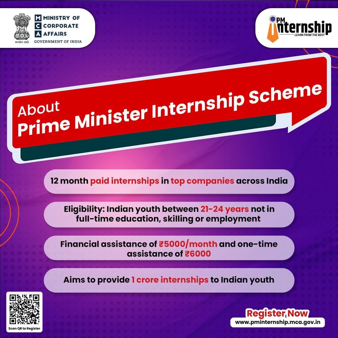 कॉरपोरेट मामलों के मंत्रालय की अगुवाई में प्रधानमंत्री इंटर्नशिप योजना भारत की युवा आबादी की क्षमता का दोहन करने के लिए उन्हें भारत की शीर्ष कंपनियों में 12 महीने की सशुल्क इंटर्नशिप प्रदान करके तैयार की गई है।