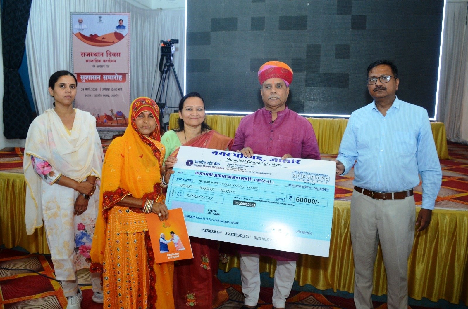 माननीय मुख्यमंत्री श्री भजनलाल शर्मा के नेतृत्व में संवेदनशील, पारदर्शी एवं जवाबदेही सरकार विकसित राजस्थान के संकल्प के साथ विकास के पथ पर आगे बढ़ रही है। उन्होंने विभिन्न योजनाओं के लाभान्वितों को बधाई देते हुए कहा कि पात्र व्यक्ति को जन कल्याणकारी योजनाओं का लाभ दिलवाना सरकार की प्राथमिकता है।समारोह के दौरान मुख्य सचेतक जोगेश्वर गर्ग, जिला कलक्टर डॉ. प्रदीप. के गावंडे व मंजू सोलंकी ने प्रधानमंत्री आवास योजना शहरी के तहत लाभार्थियों को किस्त के चैक,