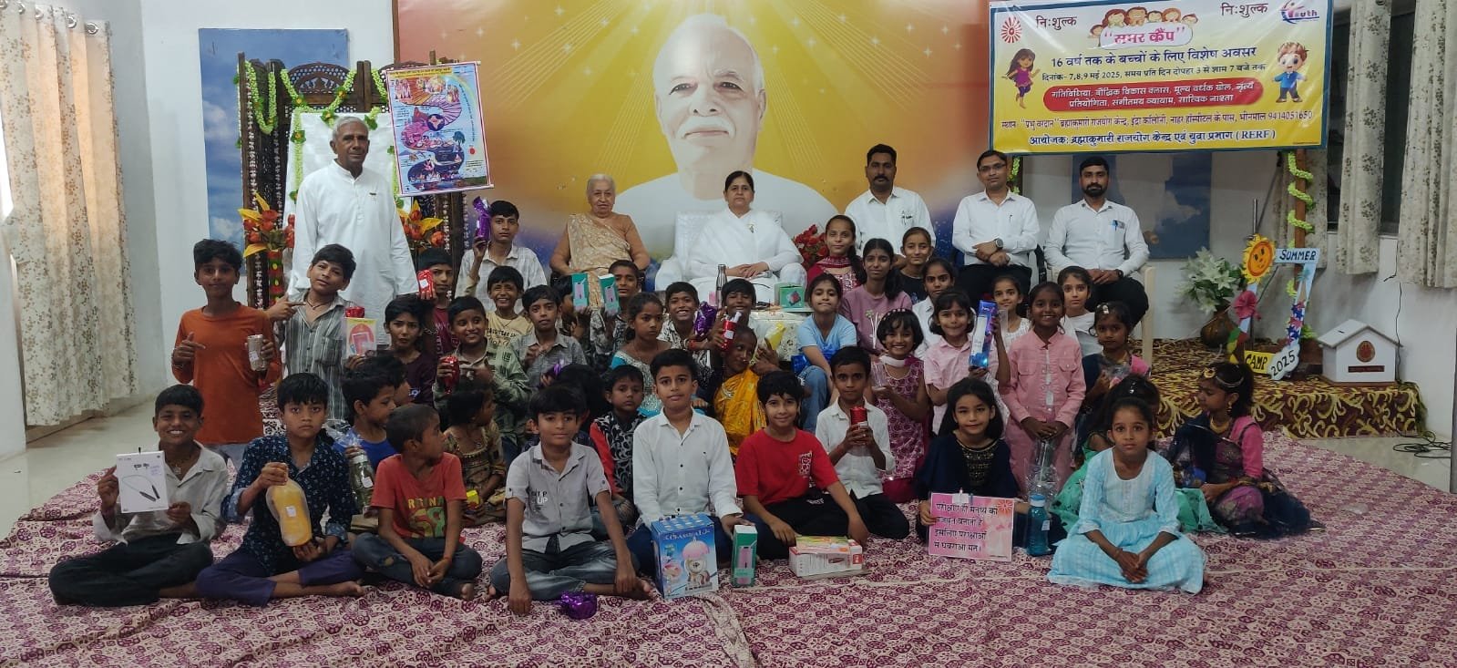 भीनमाल -भीनमाल में इंद्रा कॉलोनी स्थित ब्रह्माकुमारी राजयोग केंद्र में त्रिदिवसीय समर कैंप का समापन हुआ । रिको के अध्यक्ष जोगाराम चौधरी , एडवोकेट दिनेश हिंगड़ा , बी के बाबू भाई , बी के गीता बेन राजयोग केंद्र प्रभारी की उपस्थिति में बच्चो की भाषण प्रतियोगिता हुयी जिसका विषय था मेरा भारत महान और आओ धरती को बचाये । जिस पर 12 बच्चो ने अपनी प्रस्तुति दी साथ हि नृत्य प्रतियोगिता में प्यारा बचपन विषय पर 10 बच्चो ने प्रस्तुति दी ।भाषण प्रतियोगिता में प्रथम स्थान ऋषिराज ने प्राप्त किया। द्वितीय स्थान पर रसीला रही। नृत्य प्रतियोगिता में प्रथम शिवन्या , द्वितीय निराली, तीसरे स्थान पर प्रियांशी रही।तीसरे दिन की एक्टिविटी में बच्चो ने प्रभु के नाम पत्र लिखे साथ हि मूल्यवर्धक खेल भी खेले जिसमे सांप सीडी , एक्शन गेम जैसे अनेक गेम किये।समापन सत्र में बी के गीता दीदी ने शिक्षा के साथ संस्कारों की महत्ता समझायी जिसमे बड़ो का आदर करना, नियमित अध्ययन करना, निर्भय होकर खुलकर बात करना, प्रातः जल्दी उठना, ध्यान करना आदि।जोगाराम चौधरी ने अपने अनुभव से सभी को संघर्ष से हि सफलता मिलती है यह संदेश दिया। ब्यावर से आये बाबू भाई ने मैडिटेशन सत्र कराया। दिनेश हिंगड़ा ने संस्था के समर कैंप के आयोजन की