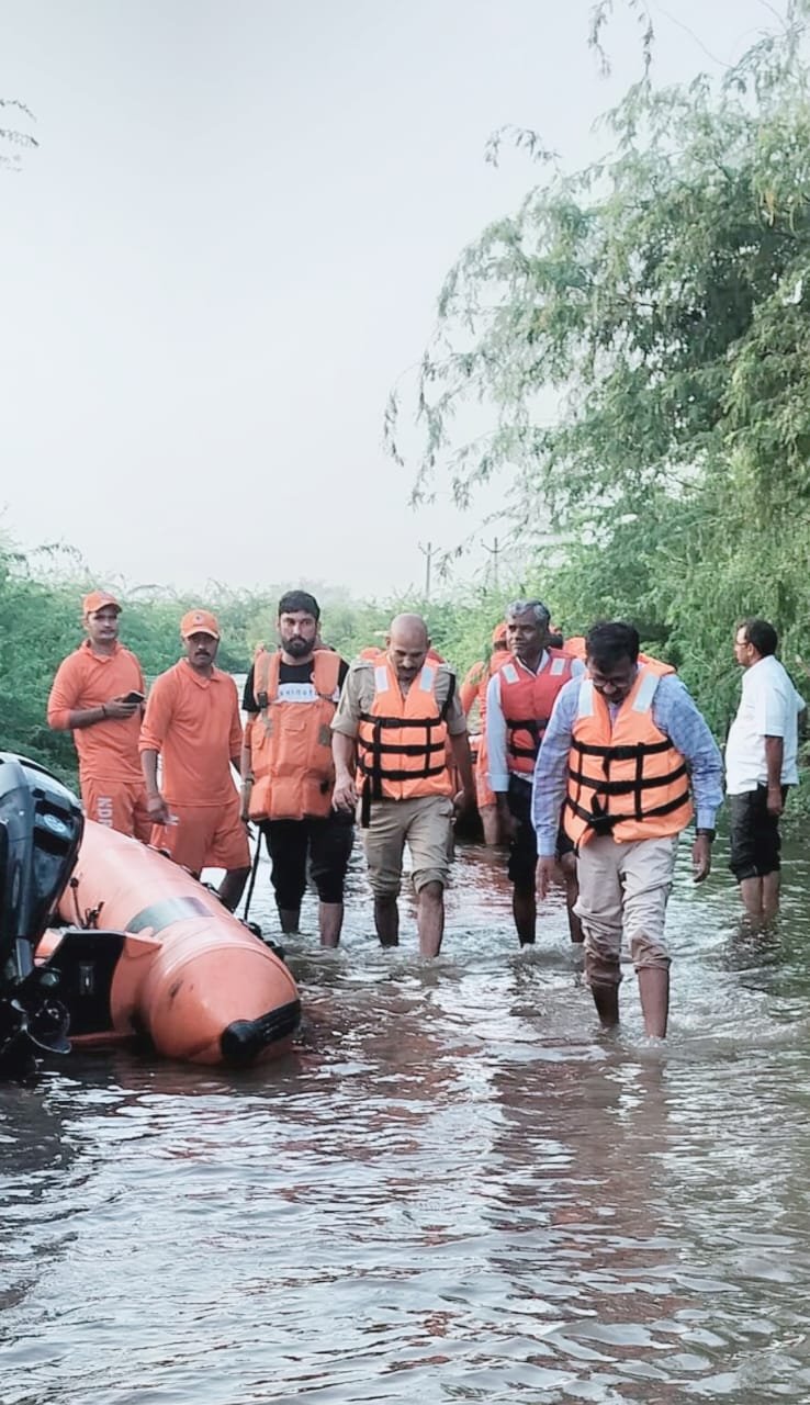जालोर 11 सितम्बर। जिला कलक्टर डॉ प्रदीप के. गावंडे एवं जिला पुलिस अधीक्षक शैलेंद्र सिंह इंदौलिया ने गुरुवार को अतिवृष्टि से प्रभावित हुए चितलवाना उपखंड के सुजानपुरा, हाडेचा, काछेला, खासरवी, चितलवाना ग्रामों सहित नेहड़ क्षेत्र का दौरा किया।