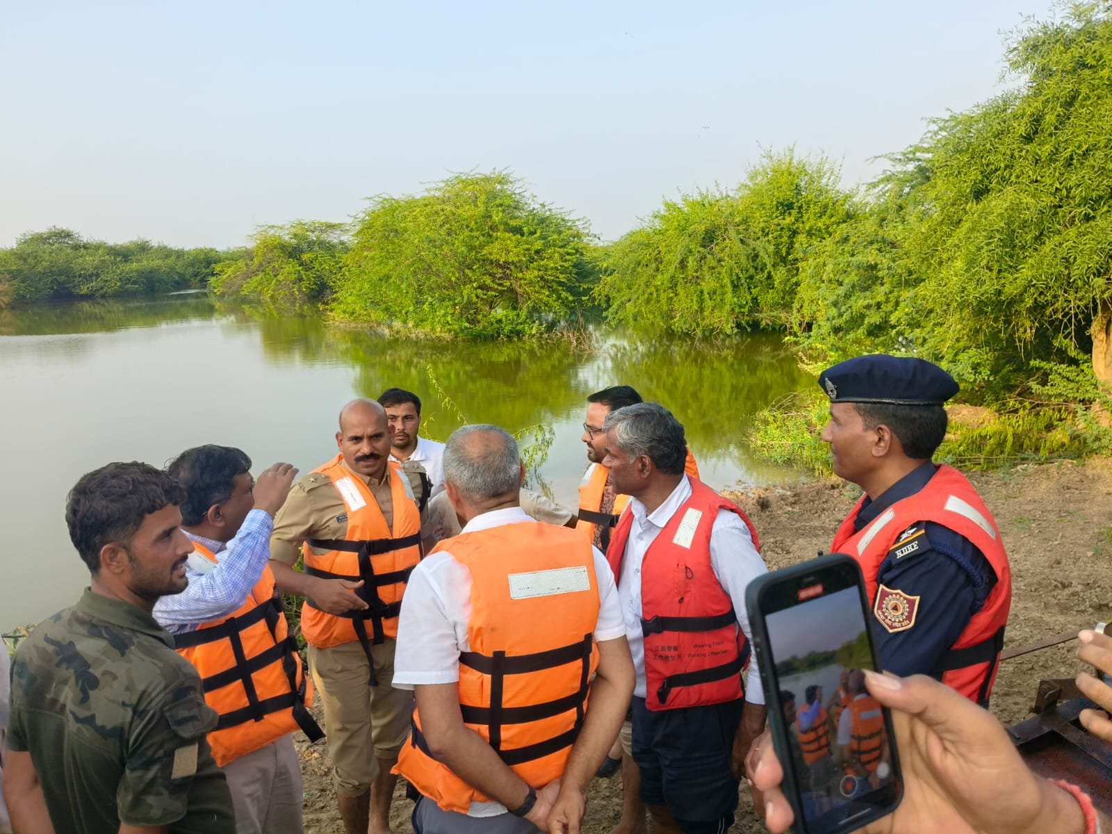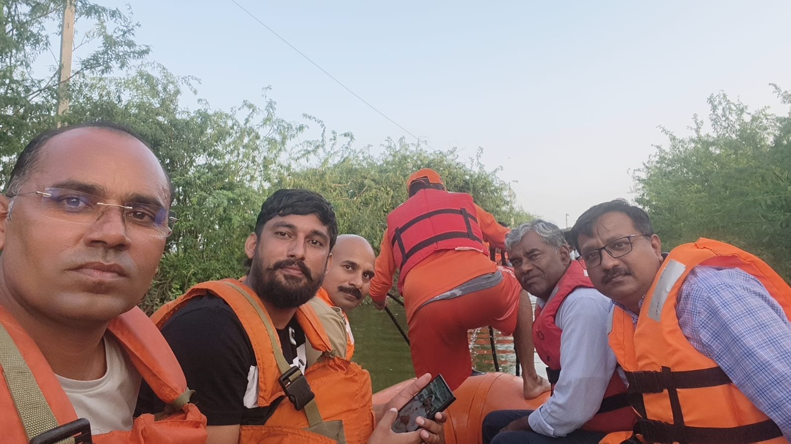 नाव एवं टै्रक्टर मे बैठकर सुजानपुरा पहुंंचे जिला कलक्टर एवं पुलिस अधीक्षक।