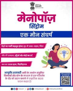 साथ ही, आयुर्वेद भारी, तीखे और नमकीन खाद्य पदार्थों, शराब, धूम्रपान और अत्यधिक शारीरिक या भावनात्मक तनाव से बचने की सलाह देता है, जो वात और पित्त दोषों को बढ़ाते हैं और रजो निवृत्ति के लक्षणों को बदतर बनाते हैं।आयुष मंत्रालय और सीसीआरएएस महिलाओं के स्वास्थ्य पर केंद्रित साक्ष्य-आधारित आयुर्वेदिक अनुसंधान, जागरूकता कार्यक्रमों और नैदानिक ​​अध्ययनों को प्रश्रय देता रहेगा, जिसका उद्देश्य पारंपरिक ज्ञान को आधुनिक स्वास्थ्य देखभाल दृष्टिकोणों के साथ एकीकृत करना है।विश्व रजो निवृत्ति दिवस 2025 पर, मंत्रालय महिलाओं से आयुर्वेद की समग्र प्रथाओं – संतुलित आहार, हर्बल सहायता, योग और सचेत जीवन शैली को अपनाने का आग्रह करता है – ताकि उनकी रजो निवृत्ति, के साथ=साथ जीवन की बेहतर गुणवत्ता और स्वस्थ उम्र सुनिश्चित हो सके।अधिक जानकारी के लिए, रजोनिवृत्ति पर सीसीआरएएस आईईसी  प्रकाशन यहां देखा जा सकता है: https://ccras.nic.in/wp-content/uploads/2024/06/Menopausal-Syndrome.pd
