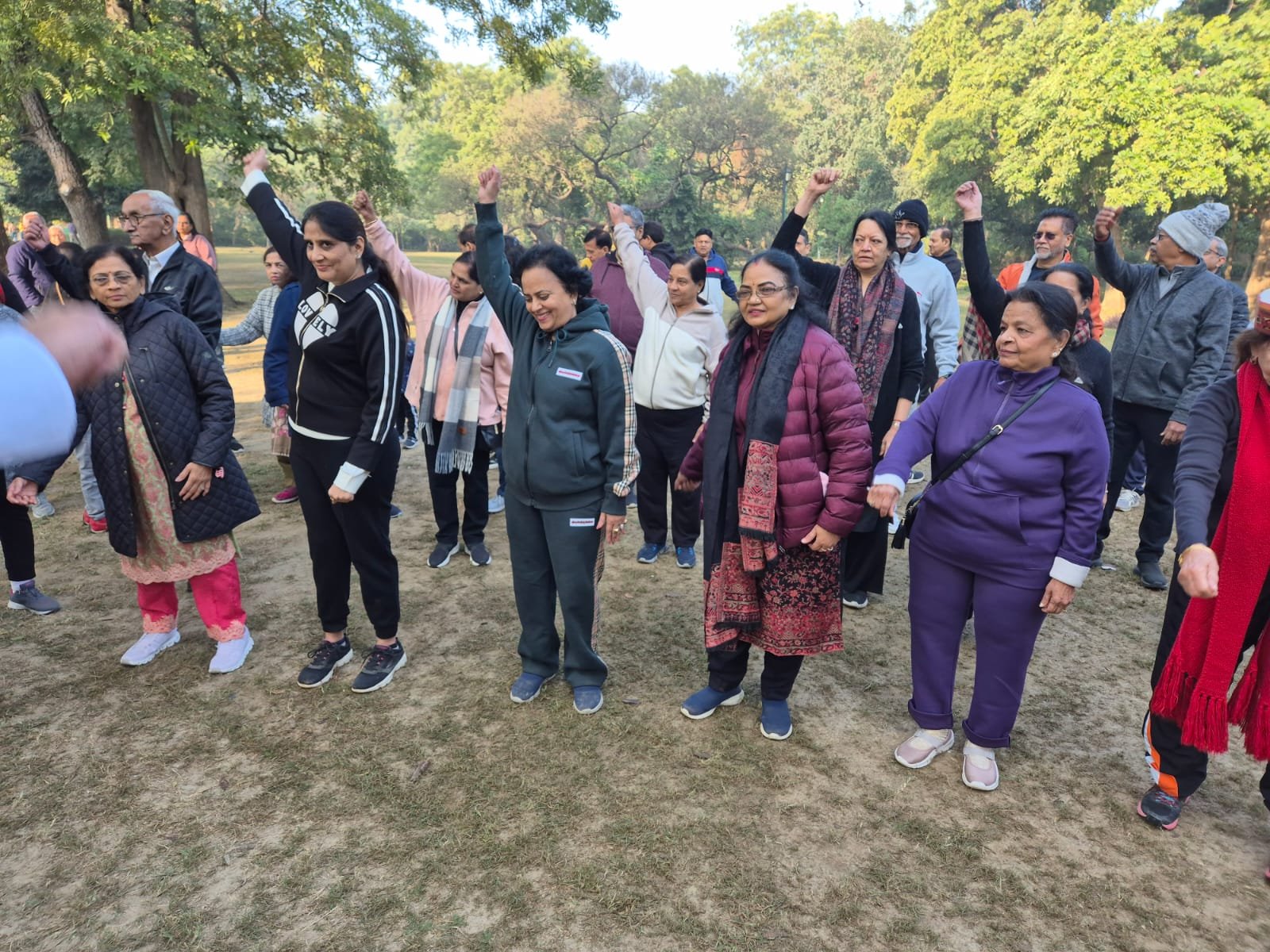 wellness-oriented morning program titled “Walk for Health, Laughter Yoga & Health Tips” at the iconic Lodhi Garden, New Delhi, with enthusiastic participation from club members and their families.The program began with a Walk for Health, encouraging participants to embrace regular physical activity. This was followed by an informative session where Mr. Vijay Kumar Sharma shared simple, practical and effective Yoga and health tips, motivating everyone to adopt yoga as a part of daily life. The atmosphere became vibrant and joyful as Mr. Santosh Sahi conducted Laughter Yoga in his unique and engaging style, spreading happiness, positivity and stress-free energy among all participants.