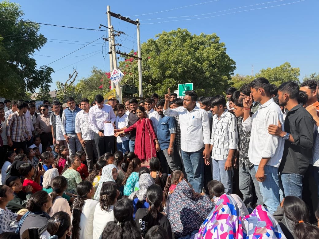 परीक्षा शुल्क बढ़ोतरी के विरोध में विधार्थियो ने की रोड जाम