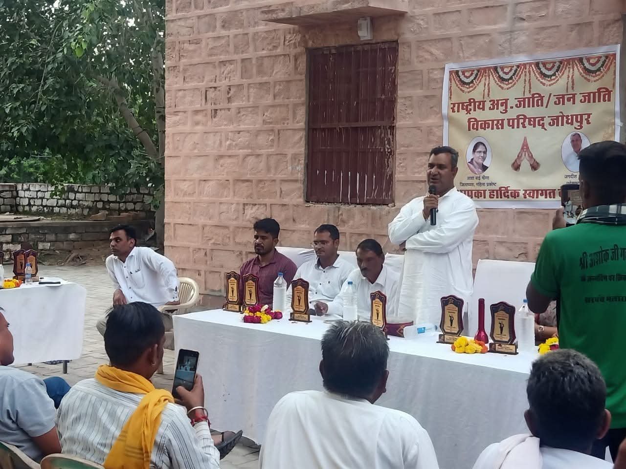 आरक्षित वर्ग के हितों के लिए आरक्षित वर्ग के लोगों को संघर्ष करना पड़ेगा जगदीश मीणा स्टेट अध्यक्ष राष्ट्रीय अनुसूचित जाति जनजाति विकास परिषद राजस्थान राष्ट्रीय अनुसूचित जाति जनजाति विकास परिषद द्वारा आयोजित भोपाल में आयोजित 28 तारीख के सम्मेलन के लिए प्रदेश अध्यक्ष जगदीश मीणा ने अपनी टीम सहित जोधपुर संभाग का दौरा किया जिसमें स्थानीय जनप्रतिनिधियों संगठन के पदाधिकारी गणों एवं समाज सेवा से जुड़े साथियों से मुलाकात की और कहा कि देश में जनसंख्या के आधार पर देश एवं प्रदेश की सरकारों को आरक्षण देना चाहिए एवं सरकारी नौकरियों में खाली पड़े बैकलॉग को भरने का कार्य करना चाहिए इन सब मुद्दों को लेकर मध्य प्रदेश की राजधानी भोपाल में 28 दिसंबर को राष्ट्रीय अध्यक्ष प्रवीण मगरिया के नेतृत्व में एक सभा का आयोजन किया गया है जिसमें सभी लोग पधारने का कष्ट करें कार्यक्रम में जोधपुर बाड़मेर जालौर के कार्यकर्ताओं ने इस कार्यक्रम में बढ़-चढ़कर हिस्सा लेने का आश्वासन दिया।