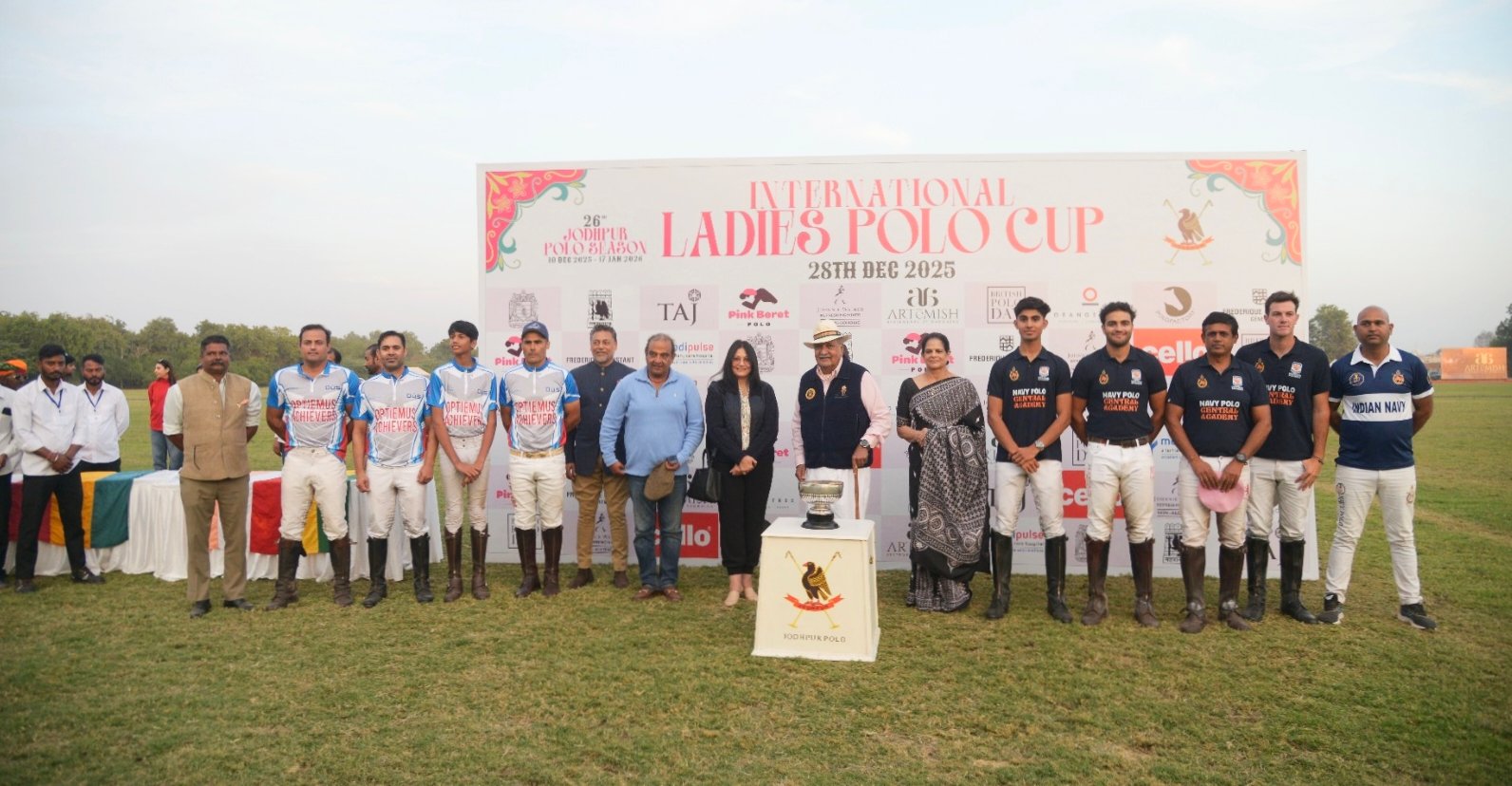 Optimus Achievers wins H.H. Maharaja of Jodhpur Cup, defeating Navy Polo Central Academy by two goals in an exciting match. Mehrangarh Warriors defeats Mandore Knights in the Ladies Polo exhibition match.The winning team players were presented with cups and trophies by Maharaja Gaj Singh Ji and Arun DeSilva of Frederic Constant. Maharaja Sardar Singh Cup exhibition match today. Jodhpur, December 28. In the 26th Jodhpur Polo Season 2025, being held under the aegis of Jodhpur Polo and Equestrian Institute, Jodhpur, at the Maharaja Gaj Singh Sports Foundation Polo Ground, Lieutenant General AVM H.H. Maharaja Umed Singh Ji Airport Road, Pabupura, the final of the H.H. Maharaja of Jodhpur Cup (8 Goal) tournament was played on Sunday,December 28, at 2:30 PM between Optimus Achievers and Navy Polo Central Academy teams. Optimus Achievers won the match by scoring six goals against four goals by Navy Polo Central Academy, securing the cup with a two-goal difference. Since both teams had the same handicap of eight goals each, the polo enthusiasts present at the ground witnessed an exciting match. At 3:30 PM, in the Ladies Polo exhibition match, Mehrangarh Warriors defeated Mandore Knights by a margin of one and a half goals, scoring four and a half goals against three. During the match, Maharaja Gaj Singh Ji, the patron of Jodhpur Polo, and Arun DeSilva of Frederic Constant were present at the ground. They presented the cups and trophies to the winning team players after the match. Maharaja Gaj Singh Ji honored Vikram Rathore’s ‘Polo Pony’ Mirchi with the Best Pony award, presenting her with a saddle. The Mehrangarh Band and the Nine Played Army Pipe One Madras Infantry Band, present at the ground, entertained the spectators with melodious tunes.