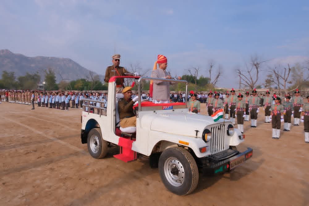 जालोर जिले में गणतन्त्र दिवस समारोह हर्षोल्लास के साथ सम्पन्न मुख्य समारोह में विधानसभा के मुख्य सचेतक जोगेश्वर गर्ग ने फहराया राष्ट्रीय ध्वज