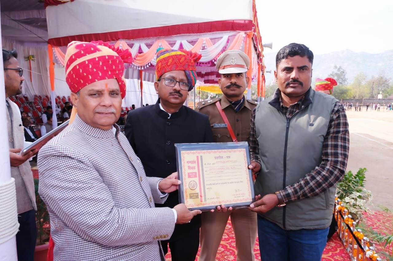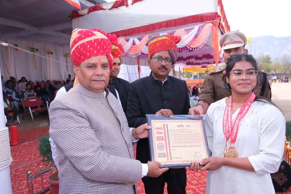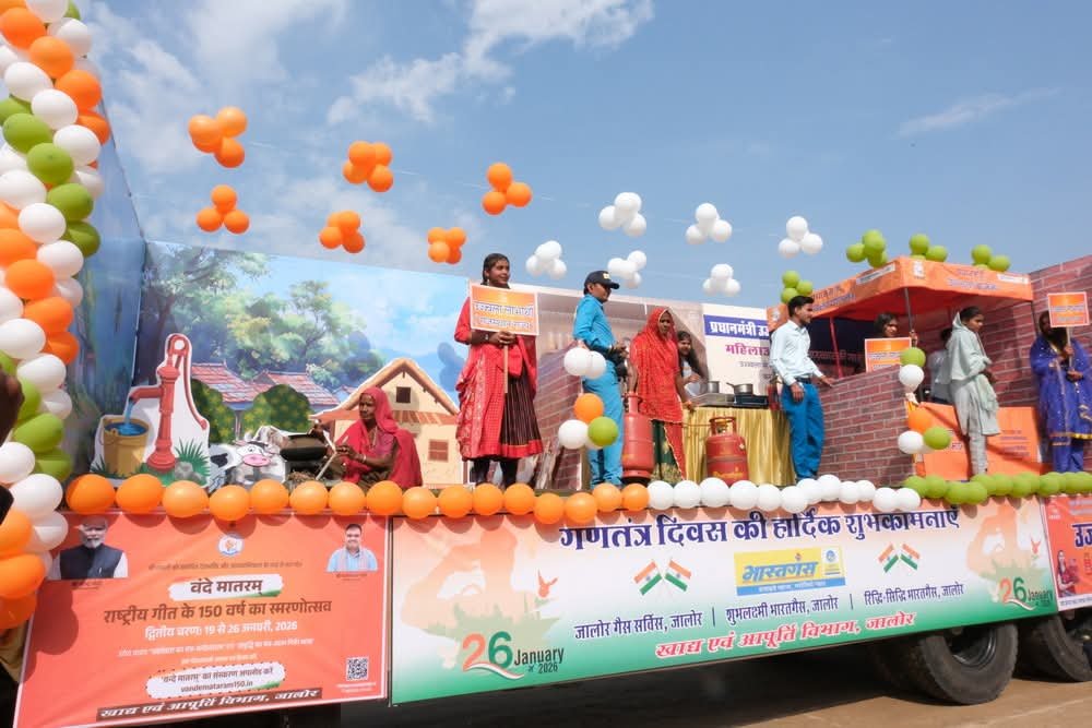 जालोर स्टेडियम में आयोजित समारोह में मुख्य सचेतक जोगेश्वर गर्ग ने मुख्य अतिथि के रूप में राष्ट्रीय ध्वज फहराने के बाद परेड का निरीक्षण किया तथा परेड कमाण्डर सीआई लीलसिंह के नेतृत्व मे मार्च पास्ट की सलामी ली। मुख्य समारोह में जिला कलक्टर डॉ. प्रदीप के. गावंडे, जिला पुलिस अधीक्षक शैलेन्द्र सिंह इंदोलिया, पूर्व विशेष योग्यजन आयुक्त धन्नाराम पुरोहित, निवर्तमान प्रधान नारायण सिंह राजपुरोहित सहित अन्य अधिकारी एवं गणमान्य लोग उपस्थित थे। मुख्य समारोह में राजस्थान विधानसभा के मुख्य सचेतक जोगेश्वर गर्ग ने गणतंत्र दिवस पर सभी को हार्दिक शुभकामनाएँ देते हुए कहा कि राज्य के मुख्यमंत्री श्री भजनलाल शर्मा के कुशल नेतृत्व में राज्य सरकार आमजन के कल्याण एवं विकास के लिए प्रतिबद्ध है। उन्होंने कहा कि देश के यशस्वी प्रधानमंत्री श्री नरेन्द्र मोदी के सेवा एवं सुशासन के संकल्प को साकार करते हुए राजस्थान विकास के पथ पर आगे बढ़ रहा है। उन्होंने कहा कि मुख्यमंत्री श्री भजनलाल शर्मा के निर्देशन में लोक कल्याणकारी फैसलें एवं नीतिगत निर्णय से कृषकों, युवाओं, महिलाओं, वृद्धजनों एवं सैनिक कल्याण सहित सामाजिक सुरक्षा, ऊर्जा, पेयजल, सड़क इत्यादि क्षेत्रों में राजस्थान प्रगति के पथ पर आगे बढ़ रहा है।उन्होंने अपने उद्बोधन में कहा कि राज्य सरकार ने पंच गौरव योजना प्रारंभ की है, जिसके तहत प्रदेश के हर जिले की विरासत एवं पारिस्थितिकी को ध्यान में रखते हुए पंच गौरव के रूप में एक उत्पाद, एक उपज, एक वनस्पति प्रजाति, एक खेल एवं एक पर्यटन स्थल को चिह्नित किया गया है। राज्य में क्षेत्रीय विकास में असंतुलन को दूर करते हुए समग्र विकास के लिए डॉ. श्यामा प्रसाद मुखर्जी जिला उत्थान योजना प्रारंभ की गई है। योजना के तहत प्रत्येक जिले को उसकी विशिष्ट पहचान और आवश्यकता के अनुसार विकसित किया जा रहा है। यह योजना राज्य के समग्र विकास का एक मजबूत आधार बनकर उभरी है। यह राज्य के सभी जिलों के लिए न केवल समृद्धि की दिशा में एक कदम है बल्कि यह समाज के हर वर्ग को सशक्त और स्वावलंबी बनाने के लिए राजस्थान सरकार की प्रतिबद्धता को भी दर्शाती है। उन्होंने कहा कि हमारी सरकार ने प्रत्येक जिले में अटल प्रगति पथ, जिला मुख्यालय पर एग्री क्लिनिक मिट्टी परीक्षण प्रयोगशाला और जिले की नॉन पेचेबल, मिसिंग लिंक सड़कों के निर्माण जैसे विभिन्न विकासात्मक कार्य करवाए हैं।उन्होंने कहा कि सरकार द्वारा प्रधानमंत्री कुसुम योजना, लाडो प्रोत्साहन योजना, मुख्यमंत्री जल स्वावलम्बन अभियान, कर्मभूमि से मातृभूमि अभियान, स्वामित्व योजना, प्रधानमंत्री विश्वकर्मा योजना, आयुष्मान भारत, प्रधानमंत्री उज्ज्वला योजना, प्रधानमंत्री आवास यो
