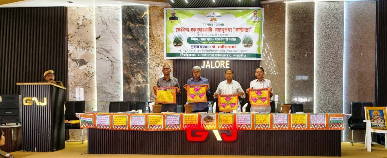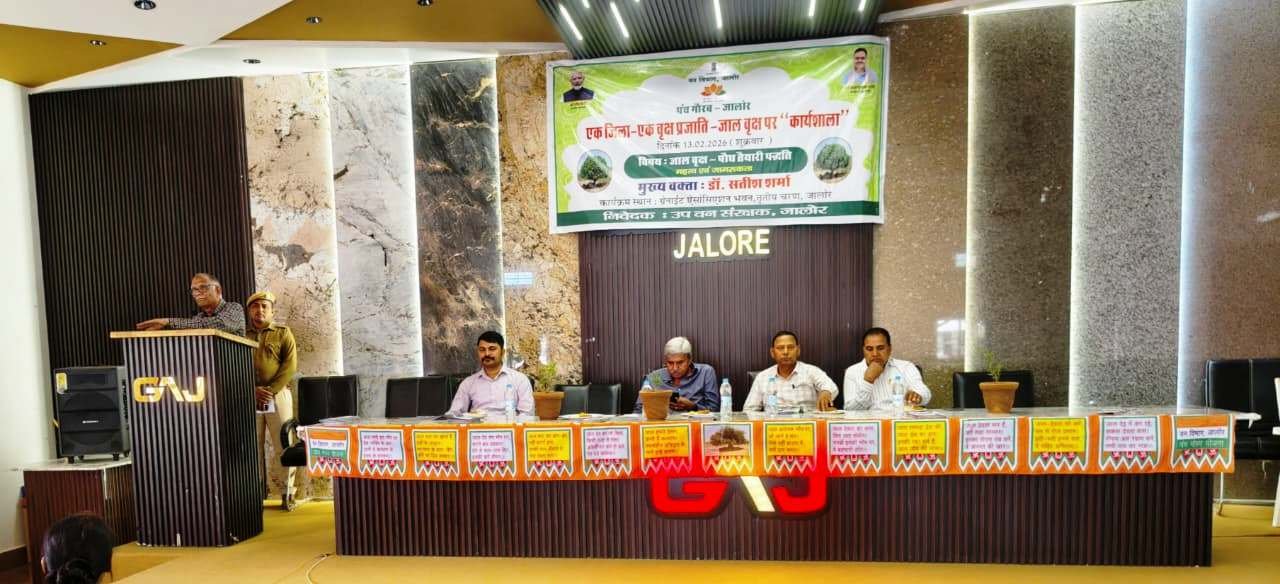 जालोर 13 फरवरी। जालोर जिला मुख्यालय पर वन विभाग के तत्वावधान में औद्योगिक तृतीय चरण स्थित ग्रेनाइट एसोसिएशन भवन में शुक्रवार को पंच गौरव कार्यक्रम के तहत एक जिला-एक वृक्ष प्रजाति, जाल वृक्ष पर कार्यशाला का आयोजन हुआ।