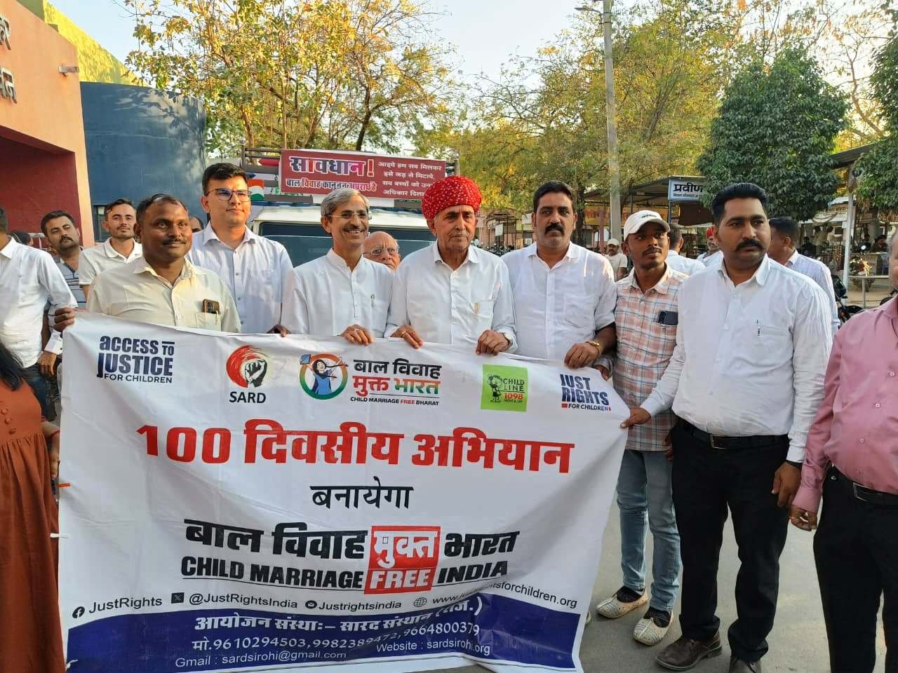 भीनमाल 24 फरवरी। जिला प्रशासन एवं सारद संस्थान-जस्ट राइट फॉर चिल्ड्रन के संयुक्त तत्वावधान में संचालित बाल विवाह मुक्ति अभियान रथ को सांसद लुम्बाराम चौधरी व भीनमाल उपखण्ड अधिकारी मोहित कासनियां ने सोमवार को उपखंड कार्यालय परिसर भीनमाल से हरी झंडी दिखाकर रवाना किया। इस अवसर पर सांसद लुंबाराम चौधरी ने कहा कि बाल विवाह करना एक बड़ा अपराध है। उन्होंने उपस्थित अधिकारियों को बाल विवाह रोकथाम के लिए प्रभावी मॉनिटरिंग करने की बात कही। अभियान रथ क्षेत्र के विभिन्न ग्रामों में भ्रमण कर आमजन को बाल विवाह के दुष्परिणामों के बारे में जागरूक किया। अभियान के अंतर्गत संवाद कार्यक्रम, शपथ ग्रहण और जनसंपर्क गतिविधियों के माध्यम से ग्रामीणों को बाल विवाह रोकने के लिए प्रेरित किया जा रहा हैं।