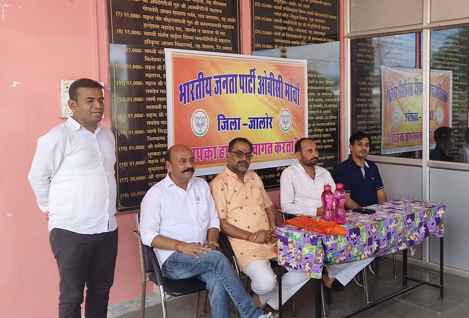 कार्यक्रम में ओबीसी मोर्चा जिलाध्यक्ष ओबाराम देवासी,नगर अध्यक्ष रवि सोलंकी,ग्रामीण मंडल अध्यक्ष प्रेमाराम देवासी,अंबालाल व्यास,दिलीप सोलंकी, एडवोकेट सुरेश सोलंकी, भैरूसिंह गुर्जर डिम्पलसिंह, गीता बारोट, दिनेश महावर, अशोक गुर्जर, धनपत मुथा, सुशीला सैन, संजय बोराणा,राजकुमार चौहान, जबराराम माली, रामसा माली,