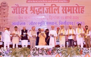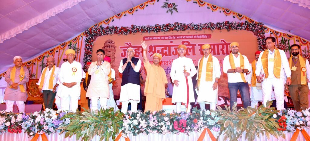 चित्तौड़गढ़-जौहर श्रद्धांजलि समारोह में मुख्य अतिथि उत्तर प्रदेश के मुख्यमंत्री श्री योगी आदित्यनाथ ने वीरता, त्याग और स्वाभिमान की प्रतीक चित्तौड़गढ़ की पावन भूमि को नमन करते हुए जौहर की ज्वालाओं में सर्वस्व समर्पित करने वाली वीरांगनाओं को श्रद्धा-सुमन अर्पित किए। उन्होंने कहा कि सनातन धर्म, मर्यादा और मातृभूमि की रक्षा के लिए अपना सर्वस्व न्योछावर करने वाली इन वीरांगनाओं की स्मृति इतिहास में अद्वितीय है और ऐसा उदाहरण पूरे विश्व में मिलना कठिन है। त्याग और बलिदान की परंपरा क्या होती है, यह चित्तौड़ दुर्ग से सीखा जा सकता है।श्री योगी ने कहा कि चित्तौड़ का दुर्ग केवल पत्थरों से बना किला नहीं है, बल्कि यह भारत की अस्मिता और स्वाभिमान का प्रतीक है। अपने दादा गुरु के राजस्थान से संबंध का उल्लेख करते हुए उन्होंने कहा कि उत्तर प्रदेश में जो भी सकारात्मक कार्य हो रहे हैं, उनकी प्रेरणा में राजस्थान और विशेष रूप से चित्तौड़गढ़ की तेजस्वी परंपरा का योगदान है।उत्तर प्रदेश के मुख्यमंत्री श्री योगी ने कहा कि जौहर सत्ता या साम्राज्य के संघर्ष का प्रतीक नहीं, बल्कि भारतीय अस्मिता, नारी सम्मान और सुरक्षा का प्रतीक है। यह केवल इतिहास का स्मरण नहीं, बल्कि इतिहास रचने वाली इस धरती का साक्षात्कार है। यह कार्यक्रम इस बात का भी संदेश देता है कि भविष्य में किसी भी बहन या बेटी को जौहर व्रत के उस दौर से गुजरना नहीं पड़े और हर बेटी को सुरक्षा व सम्मान की गारंटी मिले।केंद्रीय पर्यटन एवं संस्कृति मंत्री श्री गजेन्द्र सिंह शेखावत ने कहा कि चित्तौड़गढ़ दुर्ग भारत के स्वाभिमान, अस्मिता और अदम्य जिजीविषा का प्रतीक है। उन्होंने बताया कि चित्तौड़गढ़ दुर्ग यूनेस्को की विश्व धरोहर सूची में शामिल होने के कारण यहां विकास कार्यों की कुछ सीमाएं हैं, लेकिन प्रयास है कि यहां आने वाले पर्यटक राष्ट्रप्रेम, गौरव और गर्व की भावना के साथ लौटें। इसके लिए दुर्ग में एक्सपीरियंस सेंटर स्थापित करने की पहल प्रस्तावित है।कार्यक्रम की अध्यक्षता करते हुए विधायक श्री विश्वराज सिंह मेवाड़ ने कहा कि हमारी समृद्ध सांस्कृतिक और गौरवमयी विरासत को संभालना हमारी जिम्मेदारी है। इतिहास किसी एक जाति या समुदाय का नहीं, बल्कि हम सभी का है। उन्होंने कहा कि ऐतिहासिक स्थलों को इतिहास की दृष्टि से देखा जाना चाहिए, मनोरंजन की दृष्टि से नहीं। इतिहास हमें पूर्वावलोकन का अवसर देता है।विधायक श्री चन्द्रभान सिंह आक्या ने अतिथियों का स्वागत करते हुए कहा कि चित्तौड़गढ़ की सांस्कृतिक और शौर्य परंपरा को जौहर श्रद्धांजलि समारोह में जनभागीदारी से नई व्यापकता मिली है।कार्यक्रम के दौरान पूर्व राज्यपाल श्री वी.पी. सिंह बदनौर द्
