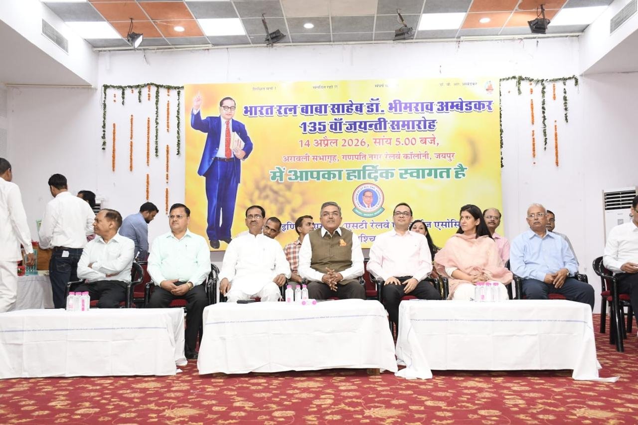 जयपुर-ऑल इंडिया एससी /एसटी रेलवे एम्प्लाइज एसोसिएशन, उत्तर पश्चिम रेलवे के जयपुर मंडल व मुख्यालय के द्वारा दिनांक 14 अप्रैल, 2026 को अरावली सभागृह, गणपति नगर रेलवे कॉलोनी, जयपुर में भारत रत्न बाबा साहेब डॉ. भीमराव अम्बेडकर का 135 वां जयंती समारोह उत्तर पश्चिम रेलवे के महाप्रबंधक श्री अमिताभ के मुख्य आतिथ्य में धूमधाम से मनाया गया। समारोह की अध्यक्षता एसोसिएशन के राष्ट्रीय अध्यक्ष श्री बी एल बैरवा ने की एवं मंडल रेल प्रबंधक श्री रवि कुमार जैन व एसोसिएशन के जोनल अध्यक्ष श्री टी आर मीना विशिष्ट अतिथि के रूप में उपस्थित हुए।समारोह के दौरान सुश्री पार्वती वर्मा व उनकी टीम में रंगारंग सांस्कृतिक कार्यक्रम प्रस्तुत किये एवं महात्मा ज्योतिराव फुले व बाबा साहेब डॉ. अम्बेडकर के जीवन संघर्ष पर एक मनमोहक नाटक प्रस्तुत किया। सांस्कृतिक कार्यक्रम के कलाकारों व नाटक के कलाकारों के बेहतर प्रदर्शन के लिए महाप्रबंधक महोदय ने इक्यावन हजार रुपये के पुरुष्कार देने की घोषणा की तथा एसोसिएशन की जोनल कार्यकारिणी की तरफ से राष्ट्रीय अध्यक्ष ने ग्यारह-ग्यारह हज़ार रुपये के परुष्कार देने की घोषणा की।समारोह में प्रधान कार्यालय के समस्त विभाध्यक्ष व अन्य अधिकारीयों-कर्मचारियों एवं मंडल कार्यालय के समस्त शाखा अधिकारीयों व अन्य शाखा अधिकारीयों-कर्मचारियों ने बढ़चढ़ कर हजारों की संख्या में भाग लिया।श्री राम सिंह राष्ट्रीय ऑडिटर व ज़ोनल अतिरिक्त सचिव, श्री विनोद कुमार मीना जोनल कार्यकारी अध्यक्ष व मंडल सचिव, श्री घासी राम नरेडिया जोनल कोषाध्यक्ष,