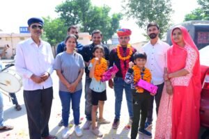 खिलाड़ियों के भीनमाल पहुंचने पर रेलवे स्टेशन पर शहरवासियों ने ढोल नगाड़ों के साथ किया स्वागत । इस दौरान नागरिक कल्याण मंच के अध्यक्ष एवं जिले के वरिष्ठ पत्रकार माणकमल भंडारी, जिला कूड़ो संघ के पदाधिकारी अभिभावक व बड़ी संख्या में शहरवासी मौजूद रहे ।