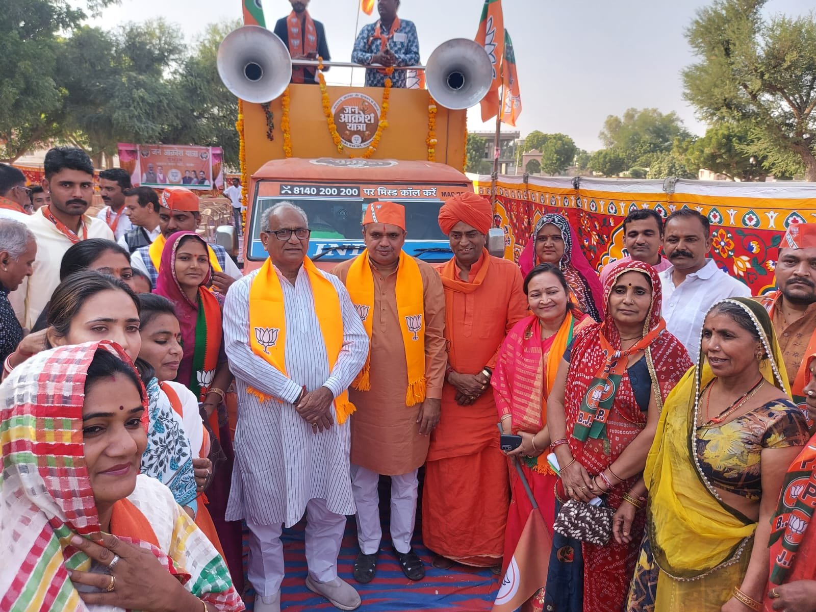 भारतीय जनता पार्टी द्वारा पूरे प्रदेश में 200 विधानसभाओं में चलाई जा रही जन आक्रोश यात्रा के तहत भारतीय जनता पार्टी द्वारा जिला मुख्यालय से समस्त रथों को राज्यसभा सांसद राजेंद्र गहलोत, जन आक्रोश यात्रा के जिला प्रभारी महंत प्रतापपुरी महाराज, भाजपा जिलाध्यक्ष श्रवणसिंह राव बोरली, विधायक जोगेश्वर गर्ग, छगनसिंह राजपुरोहित, जिला प्रमुख राजेश राणा, पूर्व विधायक शंकरसिंह राजपुरोहित, सांवलाराम देवासी, भुपेंद्र देवासी, गोविंद टांक, जनाक्रोश यात्रा जिला संयोजक गजेंद्रसिंह सिसोदिया के नेतृत्व में रथो को हरी झंडी दिखा कर रवाना किया गया ।कार्यक्रम के शुरुआत में दीप प्रवज्जलन करके कार्यक्रम का शुभारंभ किया गया । कार्यक्रम के शुरुआत में जन आक्रोश यात्रा जिला संयोजक गजेंद्रसिंह सिसोदिया ने प्रस्तावना रखी ।