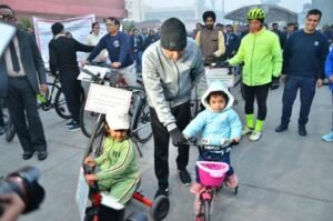In a tweet posted by the Union Health Minister, a 5-year old cycling enthusiast is seen cycling as part of the rally. As he led the cyclathon, Dr. Mansukh Mandaviya who is also known as a “Green MP” for his zeal for cycling, urged people to use bicycle to promote health and fitness. He appreciated the enthusiasm of all participants who joined the awareness rally on a cold winter morning today. “The cycle can substantially help to address environment issues as it is a no-pollution vehicle. Many developed countries are using cycles on a large scale. While in India it is known as a poor-man’s vehicle, it should be our aim to transform this in a rich man’s vehicle. It needs to be made a “passion” from “fashion”. “Let us make the cycling a part of our life for a Green Earth and health Earth”, he urged.