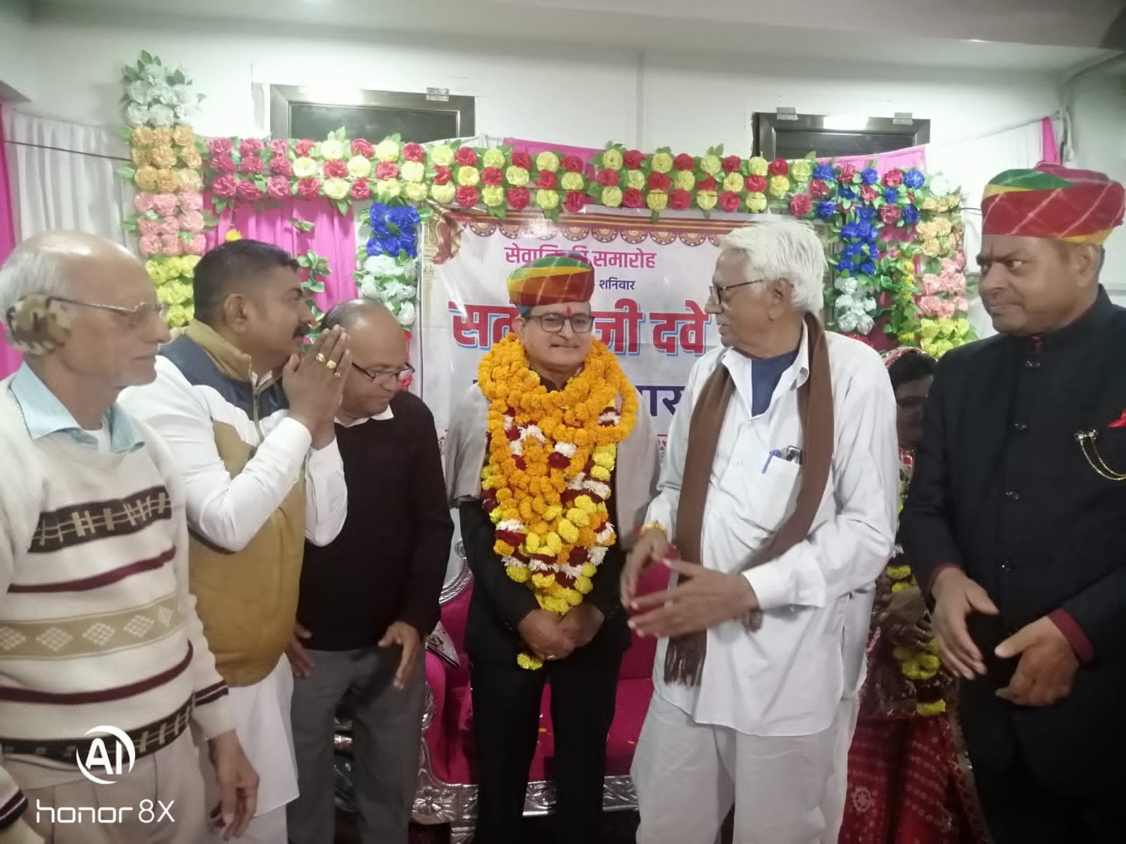 स्थानीय सूर्य मंदिर के पास होटल खेतावत परिसर हॉल में विप्र फाउंडेशन द्वारा सतीश दवे का सेवानिवृति समारोह रखा गया ।समारोह में बह्मचारी तीर्थानंद महाराज खांडा देवल आश्रम एवं विकास अधिकारी तुलसाराम राजपुरोहित की पावन उपस्थिति में सर्व प्रथम दीप प्रज्वलित कर विश्व कल्याण की कामना की गई l कार्यक्रम की अध्यक्षता शेखर व्यास अध्यक्ष श्रीमाली ब्राह्मण समाज, अशोक टाइगर संरक्षक विप्र फाउंडेशन सिरोही, डाॅ. घनश्याम व्यास, जोगाराम राजपुरोहित वरिष्ठ उपाध्यक्ष विप्र फाउंडेशन जालोर, ललित दवे राजा जिला प्रवक्ता, महिला विंग की पावन उपस्थिति सहित समस्त विप्र फाउंडेशन के नेतृत्व में स्वागत रखा गया l सर्व ब्राह्मण समाज विप्र फाउंडेशन कार्यक्रम में विकास अधिकारी तुलसाराम राजपुरोहित ने कहा कि राज्य सरकार के विविध जन कल्याणकारी योजनाओं से संबंधित योग्य व्यक्तियों के प्रति जोड़कर सफल कटिबद्ध एक अनुकारणीय सेवा रही है l