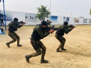 To mark the successful completion of training of Air Force Special Forces ‘Garud’ Commandos, Maroon Beret Ceremonial Parade was held on 14 January 2023 at Garud Regimental Training Centre (GRTC), Air Force Station Chandinagar. Air Marshal Surat Singh AVSM VM VSM was the Reviewing officer for the parade. The Reviewing Officer congratulated the Garuds on successful completion of their training. He emphasised the importance of rigorous training and honing of Special Forces skills to keep pace with the changing security scenario. He presented Maroon Beret, Garud Proficiency Badge and Special Forces Tabs to the successful Garud trainees and gave away trophies to the meritorious trainees. The best all rounder trophy was presented to AC Vikram Davar.