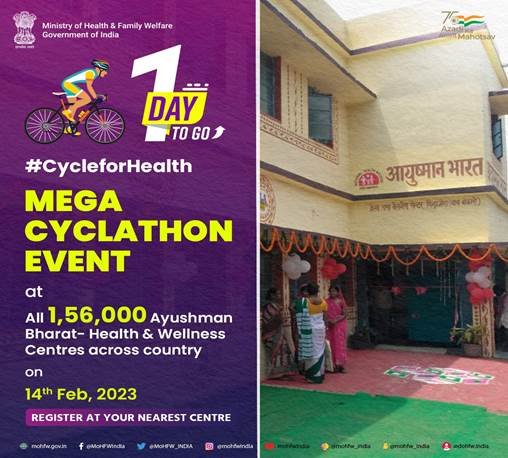 स्वस्थ जीवन के बारे में जागरूकता बढ़ाने के लिए पिछले सालशुरू किए गए “स्वस्थ मन, स्वस्थ घर” अभियान के तहत, देश भरमें 1.56 लाख आयुष्मान भारत – स्वास्थ्य और कल्याण केंद्रों में हरमहीने की 14 तारीख को स्वास्थ्य मेलों का आयोजन कियाजाएगा। इन देशव्यापी स्वास्थ्य मेलों के अंतर्गत योग, जुम्बा, टेलीकंसल्टेशन, निक्षय पोषण अभियान, गैर-संचारी रोग स्क्रीनिंगऔर दवा वितरण, सिकल सेल रोग स्क्रीनिंग जैसी गतिविधियां कीजाएंगी।इसके साथ ही, 14 फरवरी 2023 को सभी एबी-एचडब्ल्यूसी मेंसाइक्लोथॉन, साइकिल रैली या साइकिल फॉर हेल्थ के रूप मेंएक साइकिल कार्यक्रम आयोजित किया जाएगा ताकि शारीरिकऔर मानसिक कल्याण और पर्यावरण के अनुकूल परिवहन के बारेमें जागरूकता को बढ़ावा दिया जा सके।दिल्ली में लेडी हार्डिंग मेडिकल कॉलेज में ‘साइकिल फॉर हेल्थ’ थीम के साथ एक साइक्लोथॉन का आयोजन किया जाएगा।अस्पताल परिसर में एक क्षेत्र को साइकिल स्टैंड के रूप में समर्पितकिया जाएगा।केंद्रीय स्वास्थ्य और परिवार कल्याण मंत्री डॉ. मनसुख मंडाविया नेसभी नागरिकों से अपने नजदीकी एबी-एचडब्ल्यूसी में मेगासाइकिलिंग कार्यक्रम में भाग लेने का आग्रह किया।”साइकिल चलाना हमारे शरीर को स्वस्थ, फिट और सक्रिय रखनेके सर्वोत्तम तरीकों में से एक है।“डॉ. मनसुख मंडाविया ने कहा, ” चाहे दूरी कम तय करें या ज्यादा, थोड़े समय के लिए चलाएं या अधिक के लिए, लेकिन साइकिलअवश्य चलाएं!””स्वस्थ मन, स्वस्थ घर” नवंबर 2022 से अक्टूबर 2023 तकचलने वाला एक साल का अभियान है। यह ‘आजादी का अमृतमहोत्सव’ (एकेएएम) मनाने के लिए स्वास्थ्य और कल्याण केविषय को बढ़ावा देगा।
