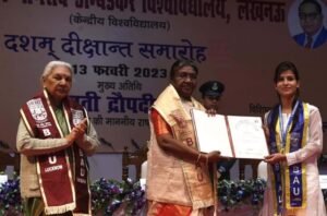 राष्ट्रपति श्रीमती द्रौपदी मुर्मु आज लखनऊ में बाबासाहेब भीमराव अम्बेडकर विश्वविद्यालय के 10वें दीक्षांत समारोह में सम्मिलित हुईं।