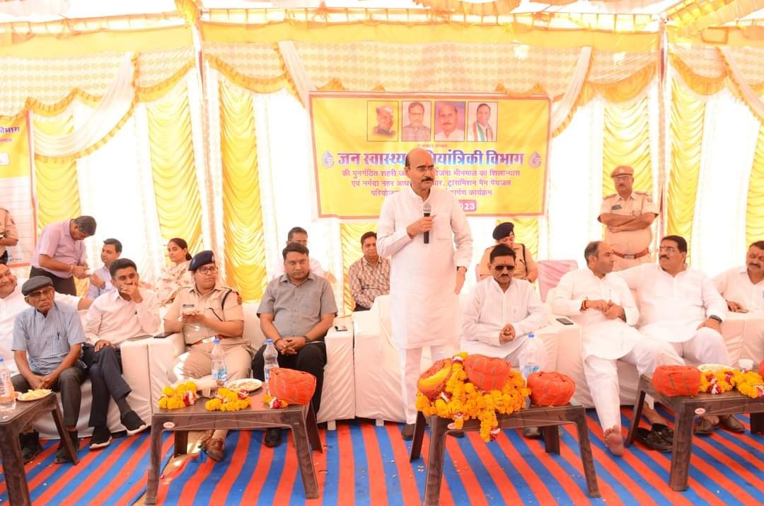 भीनमाल में नर्मदा नहर आधारित ई.आर. ट्रांसमिशन मैन परियोजना का लोकार्पण व पुनर्गठित शहरी जल प्रदाय योजना का शिलान्यास कार्यक्रम सम्पन्न।