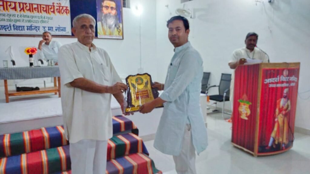 भीनमाल। आदर्श विद्या मंदिर उच्च माध्यमिक विद्यालय ने सामाजिक सरोकार सेवा-निधि-समर्पण में राष्ट्रीय स्तर पर प्रथम स्थान प्राप्त किया है। जिला संवाददाता हनुमानप्रसाद दवे ने बताया कि नोखा बीकानेर में आयोजित प्रांत स्तरीय प्रधानाचार्य सम्मेलन में राष्ट्रीय स्तरीय पुरस्कार प्रांत मंत्री मोहनलाल जोशी ने प्रधानाचार्य अमित व्यास को दिया। पुरस्कार सामाजिक सरोकारो के अंतर्गत दलित, शोषित, पीड़ित और शिक्षा से वंचित वर्गों के लिए हर वर्ष समर्पण सप्ताह मनाया जाता है। सप्ताह में विद्यालय के छात्र स्वयं राशि को इकट्ठा कर समर्पण करते है। समर्पण के तहत स्थानीय विद्यालय ने राष्ट्रीय स्तर पर तीसरी बार प्रथम स्थान प्राप्त किया है। इस सत्र में विद्यालय ने तीन लाख ग्यारह हजार की राशि का समर्पण किया। प्रधानाचार्य अमित व्यास के विद्यालय पहुंचने पर स्वागत किया गया।