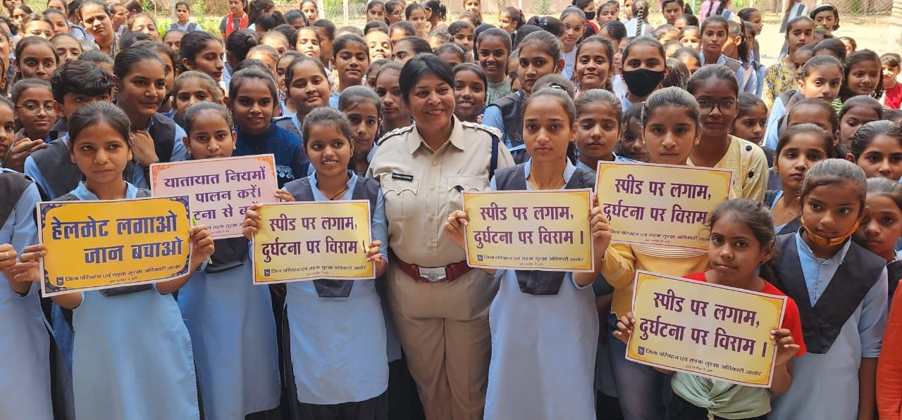 भीनमाल जिले में ट्राफिक व सड़क सुरक्षा व्यवस्था को लेकर चल रहे सड़क सुरक्षा सप्ताह के दौरान भीनमाल पुलिस उप अधीक्षक सीमा चोपड़ा ने भीनमाल में राजकीय बालिका विद्यालय में जाकर छात्राओं के साथ यातायात नियमों के बारे में संपूर्ण जानकारी दी साथ ही गुड टच, बेड टच की जानकारी दी सीमा चोपड़ा ने कहा की यातायात नियमों का हमेशा पालन करना चाहिए के सड़क पर टू व्हीलर पर हेलमेट अनिवार्य लगाएं 18 वर्ष की आयु के दौरान ड्राइविंग लाइसेंस बनवाएं फोर व्हीलर में सीट बेल्ट का प्रयोग करें साथ ही सोशल मीडिया पर ज्यादा ध्यान ना दें मोबाइल से ज्यादा अपनी पढ़ाई पर ध्यान देवें इस दौरान यातायात पुलिस व स्कूल प्रशासन के