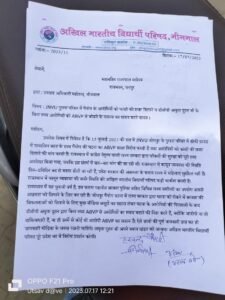 JNVU गैंग रेप मामला : उपखंड कार्यालय के बाहर एबीवीपी का प्रदर्शन, राज्यपाल के नाम सौंपा ज्ञापन।